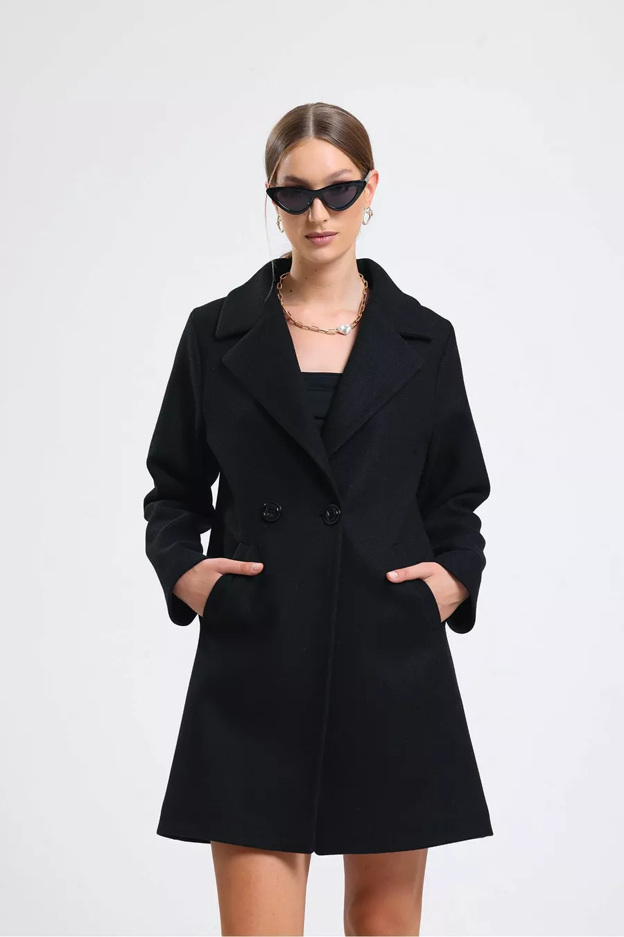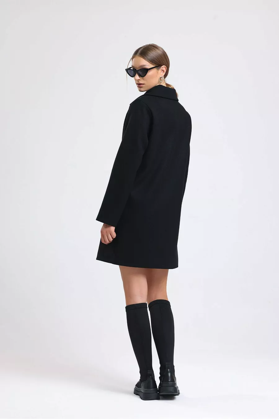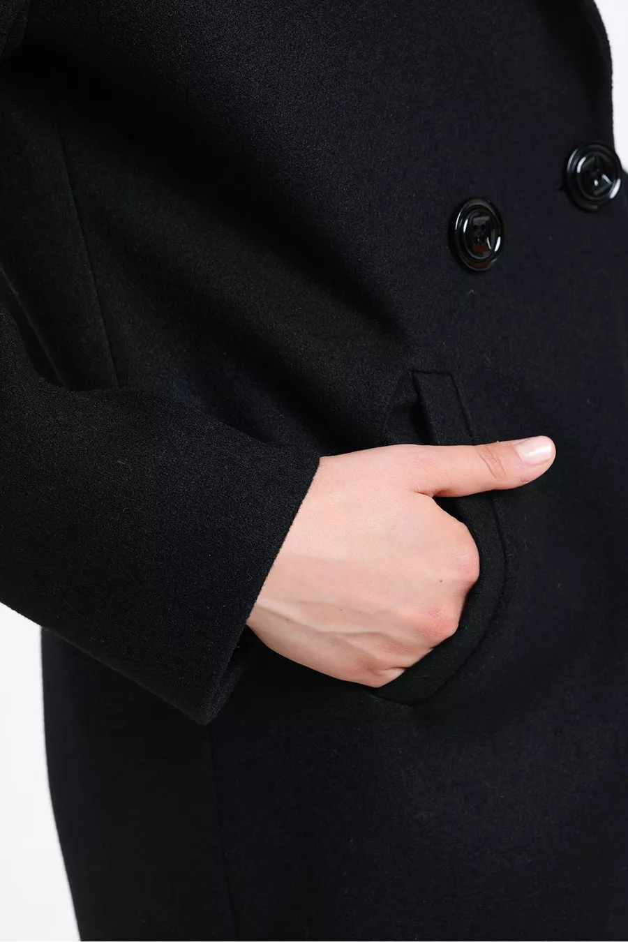 Cappotto corto in tessuto pettinato da donna con bottoni