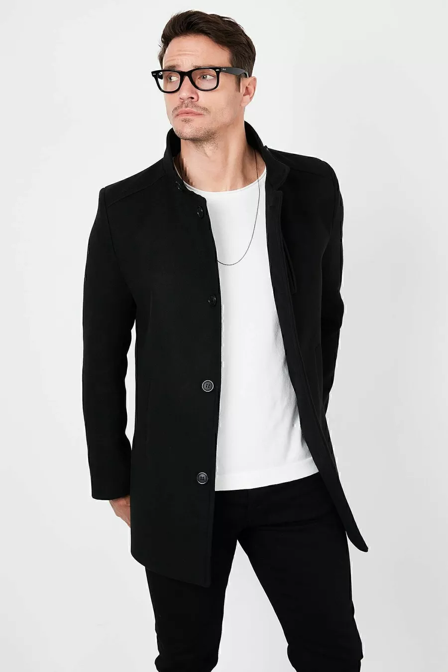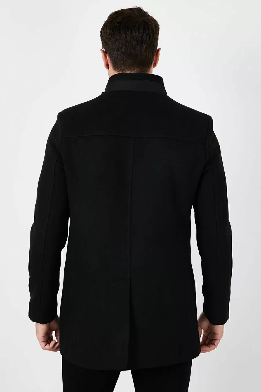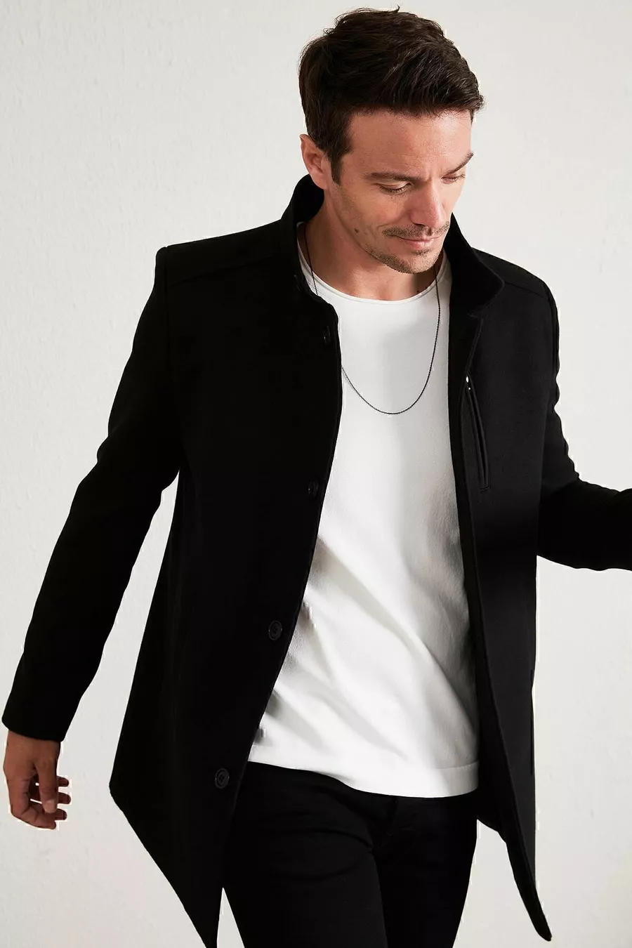 Cappotto da uomo in panno slim fit con collo alto e bottoni