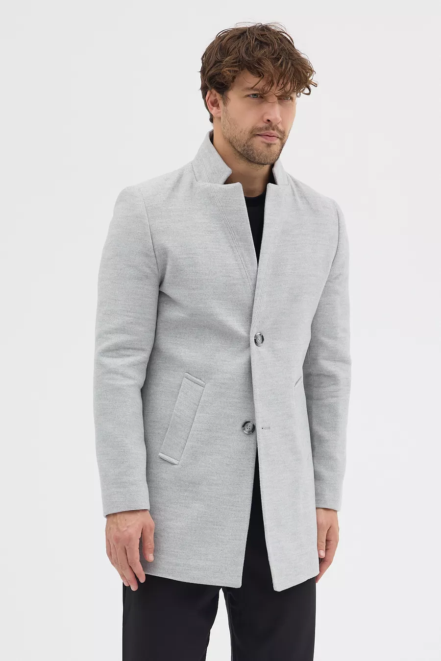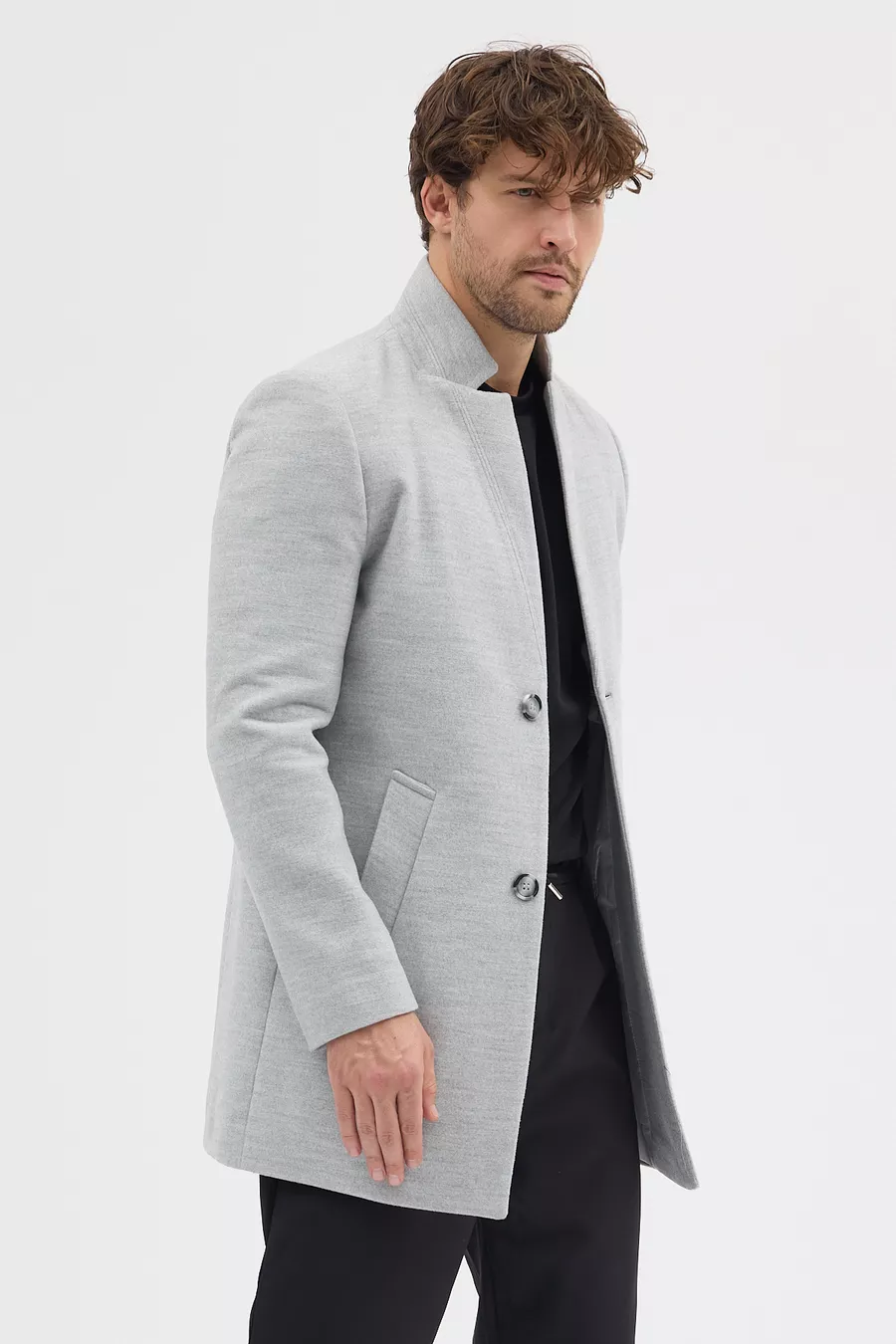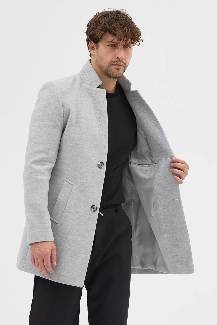 Cappotto da uomo grigio slim fit con collo alto in lana