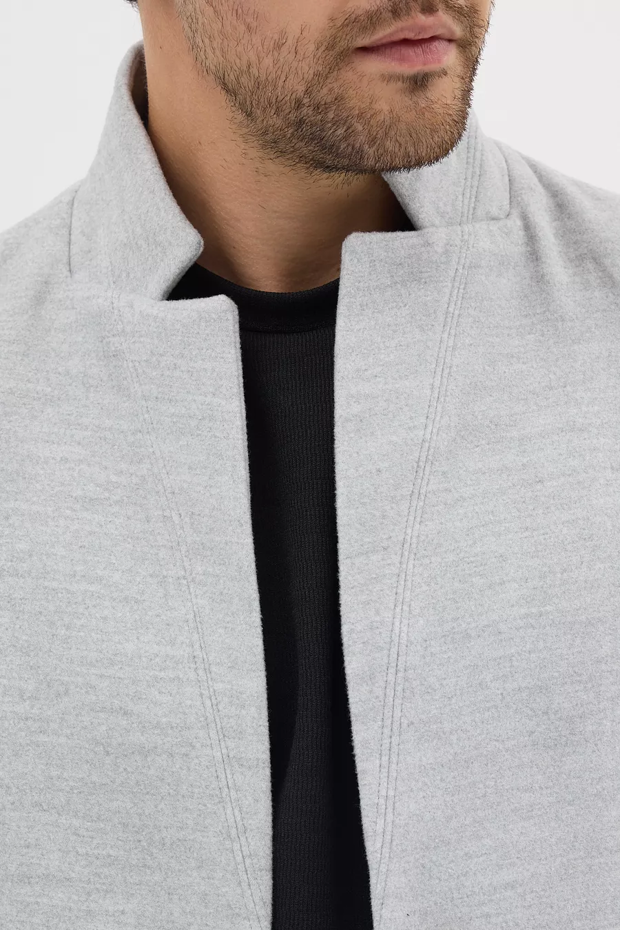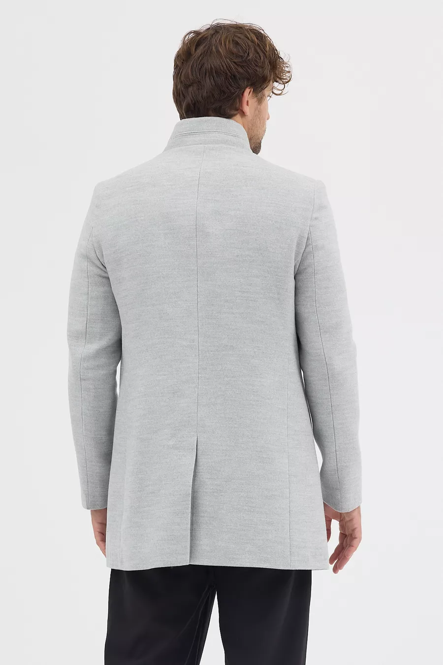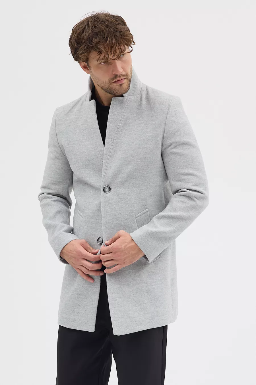 Cappotto da uomo grigio slim fit con collo alto in lana