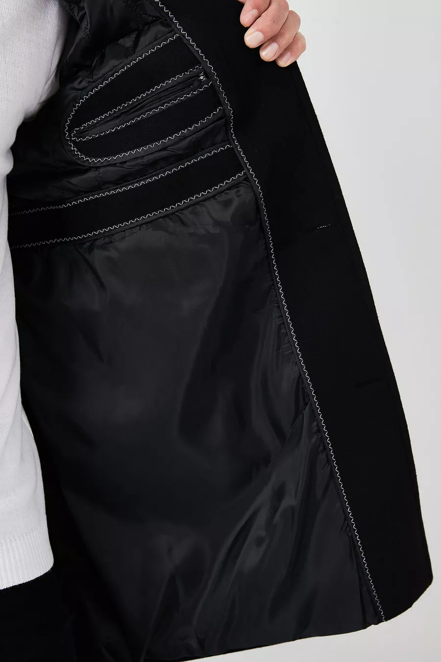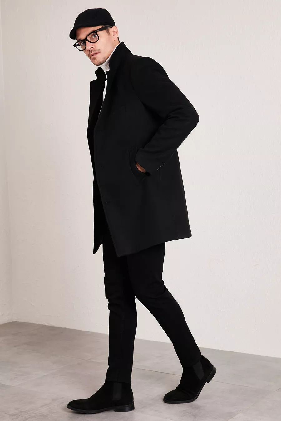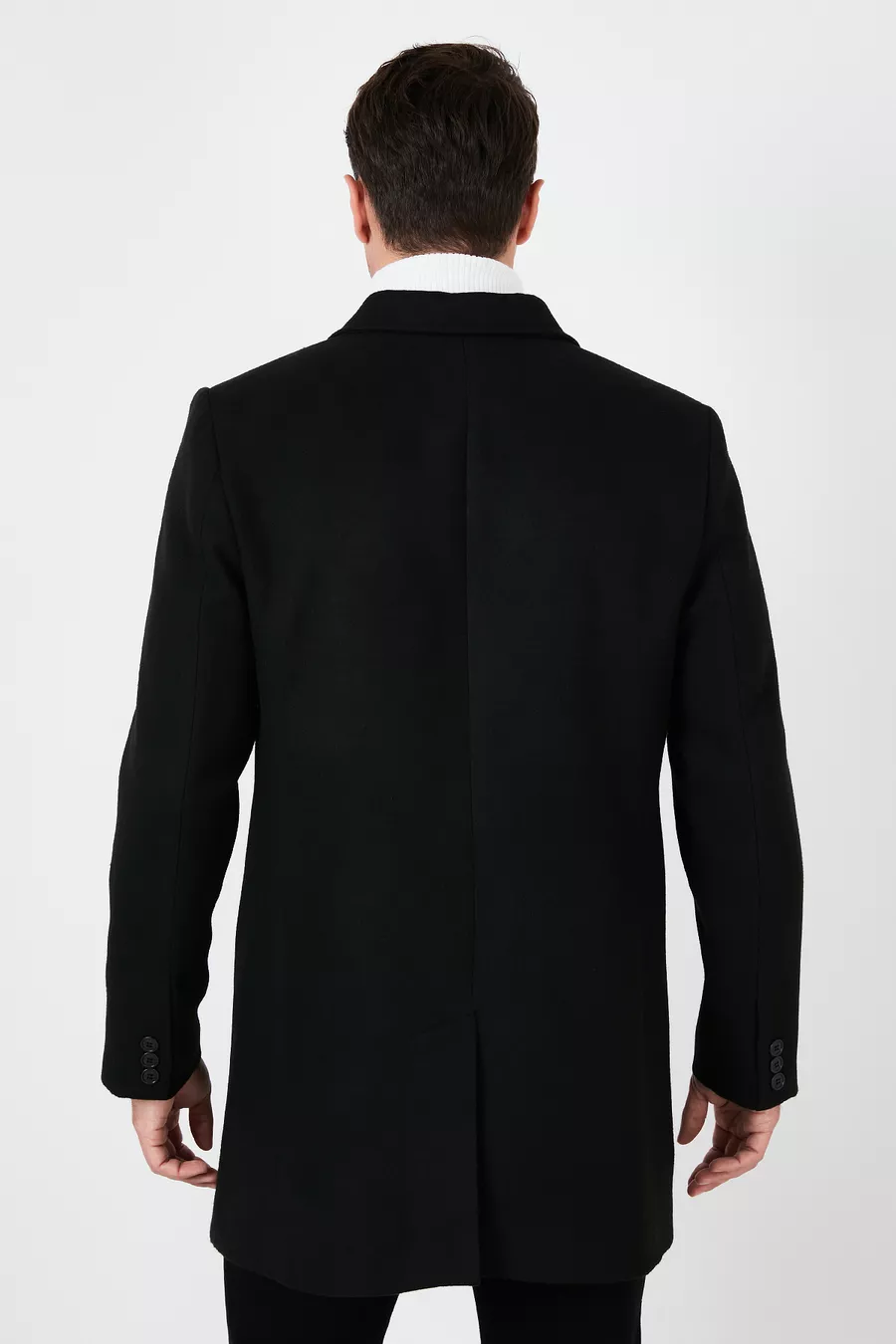 Cappotto da uomo in cashmere con tasca singola, collo a camicia, chiusura con bottoni, modello slim fit, art.