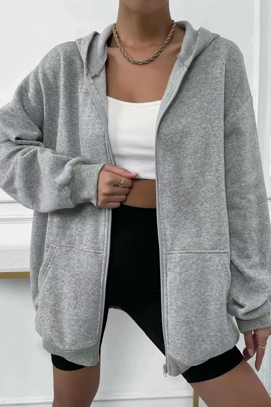Materiale: Tessuto a trama Tipo di manica: Manica standard Fantasia: Unita Taglia: Oversize Colore: Grigio Tipo di tessuto: Tessuto a trama Tipo di collo: Collo con zip Dettaglio prodotto: Zip Tipo di prodotto: Semplice Tasca: Doppia tasca Lunghezza manica: Lunga Collezione: Basic Spessore: Medio Lunghezza: Regolare Sagoma: Basic Occasione: Quotidiana Caratteristica aggiuntiva: Nessuna caratteristica aggiuntiva Tecnica di stampa/ricamo: Senza stampa Chiusura: Con zip Numero di pezzi: 1 Persona: Cool & Comfort Dettaglio sostenibilità: No Tipo di tessitura: 2 fili di cotone Condizione cintura/cintura: Senza cintura Composizione materiale: Cotone Istruzioni di lavaggio: Tipo 1 Condizione confezione: Senza confezione