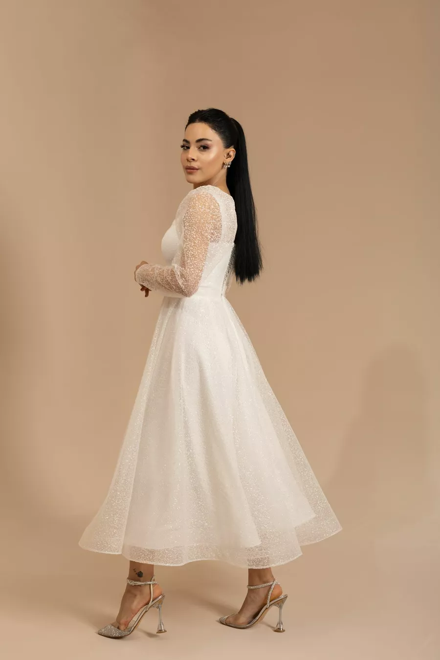 Questo prodotto verrà spedito da Quenmadam. Più di 10 azioni sono offerte per essere vendute al prezzo della campagna. Il venditore determina il prezzo di vendita del prodotto che hai esaminato. Un prodotto può essere venduto da più di un venditore. I venditori dei prodotti offerti in vendita da più di un venditore sono classificati in base al prezzo che hanno impostato per il prodotto, le valutazioni del venditore, lo stato della consegna, le promozioni dei prodotti, se la spedizione è gratuita o meno, e se i prodotti possono essere consegnati con consegna rapida, lo stock e le categorie dei prodotti. È possibile ordinare un massimo di 5 unità di questo prodotto. Queenmadam si riserva il diritto di annullare ordini superiori a 5 ordini. Questo limite non è valido per gli ordini aziendali ed è possibile impostare limiti diversi per gli ordini aziendali. Reso gratuito entro 15 giorni. Clicca qui per maggiori informazioni. Nota importante: A causa delle caratteristiche del tessuto utilizzate nel prodotto, potrebbero verificarsi fuoriuscite di glitter nel prodotto. Questo non è un difetto, ma una struttura caratteristica del tessuto. Cecilia: Affascinante abito midi in tulle sfumato Cecilia è un abito midi dal taglio a trapezio che combina eleganza e design moderno. Aggiunge un'atmosfera romantica ai tuoi momenti speciali con le sue opzioni di colore bianco, bordeaux, rosso, verde smeraldo e blu navy. Il materiale in tulle sfumato offre profondità ed eleganza in ogni strato dell'abito, rendendoti impressionante. Il design con scollo a cuore crea un tocco femminile e romantico, mentre la chiusura con lacci assicura che l'abito si adatti perfettamente al corpo. La lunghezza midi permette di muoversi comodamente e non scende a compromessi sulla sua eleganza. Cecilia è l'opzione perfetta che ti renderà speciale per il tuo matrimonio o eventi di fidanzamento. Se sei alla ricerca di eleganza e romanticismo per le tue occasioni speciali, Cecilia è l'abito che stai cercando.