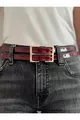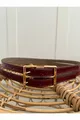 Cintura da donna in pelle verniciata doppia Bordeaux, cintura per pantaloni e abiti