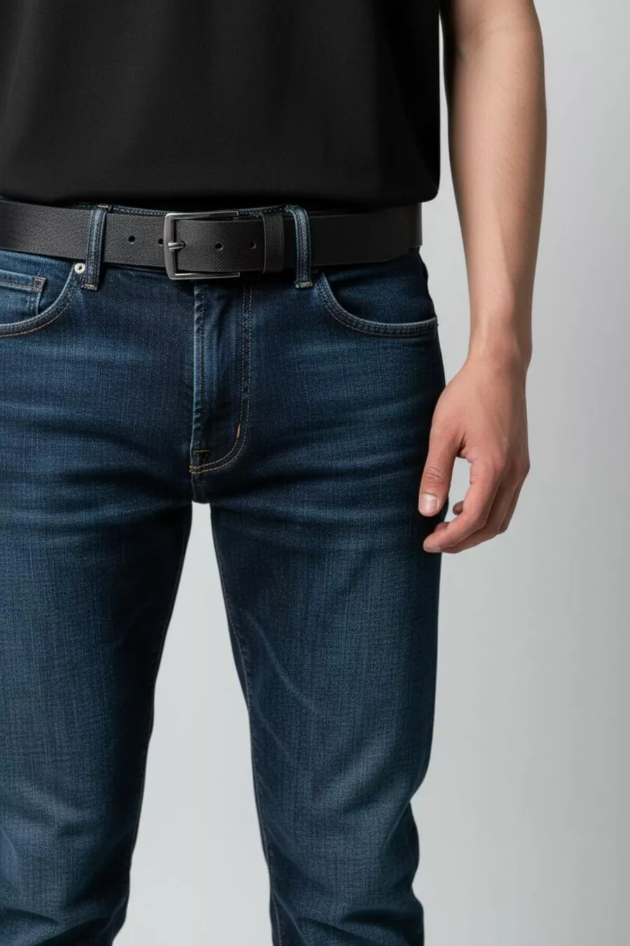 Cintura da uomo in pelle sintetica adatta a jeans e tela, larga 4 cm