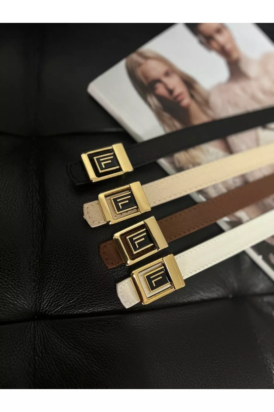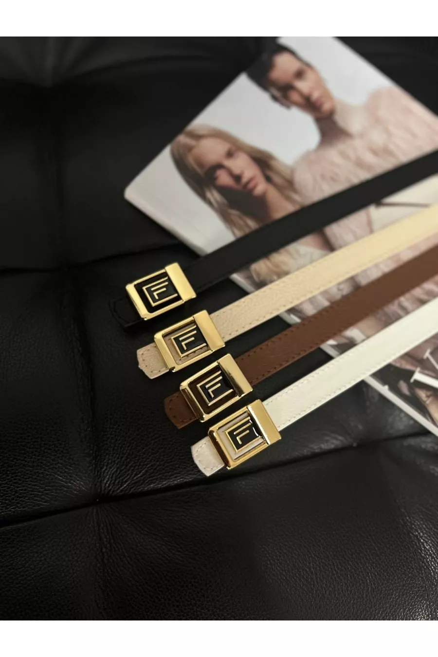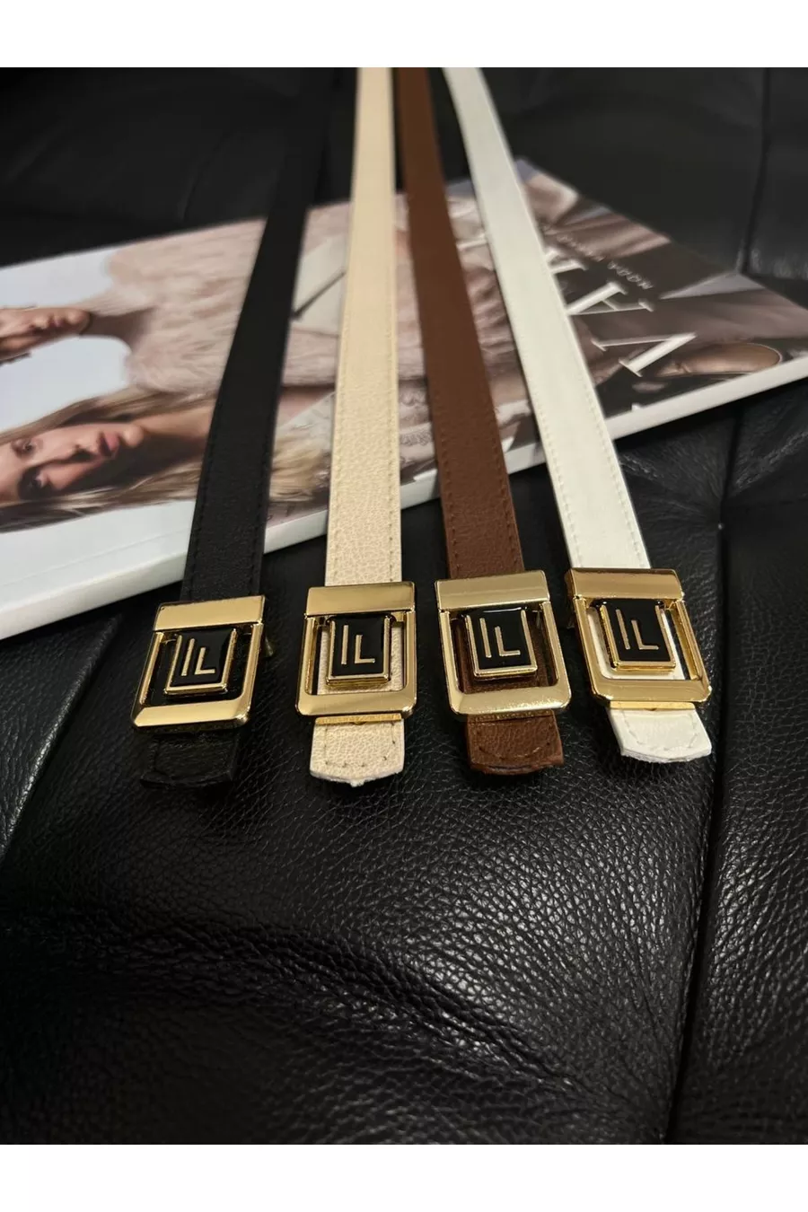Cintura da donna sottile con fibbia dorata e logo F, confezione da 4, cintura per pantaloni e giacca