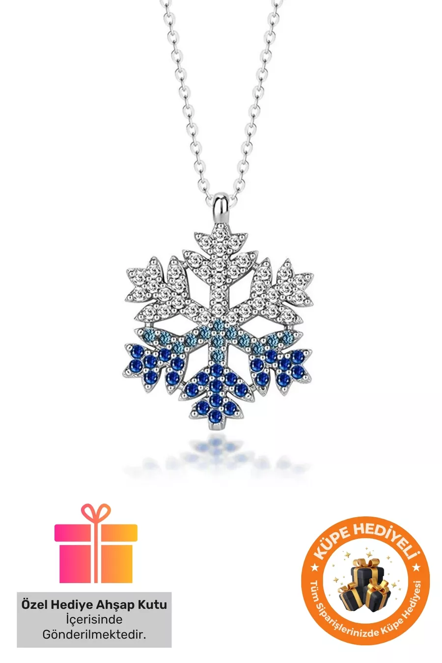 Collana a Fiocco di Neve con Confezione Regalo, Placcatura in Argento, Pietre Blu e Bianche, Collana Rodio Fiocco di Neve