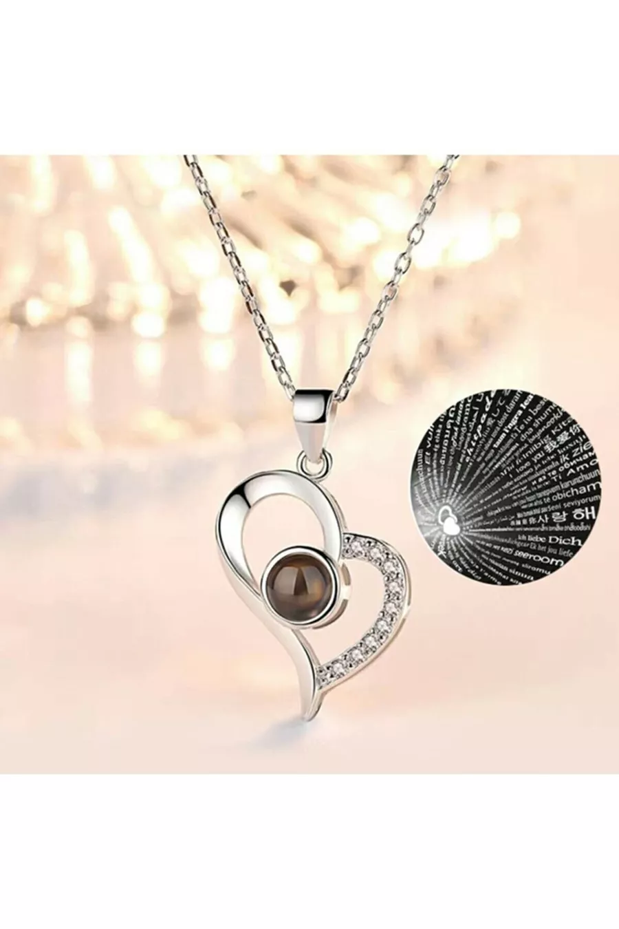 Collana a cuore con la scritta 'Ti amo' in argento placcato
