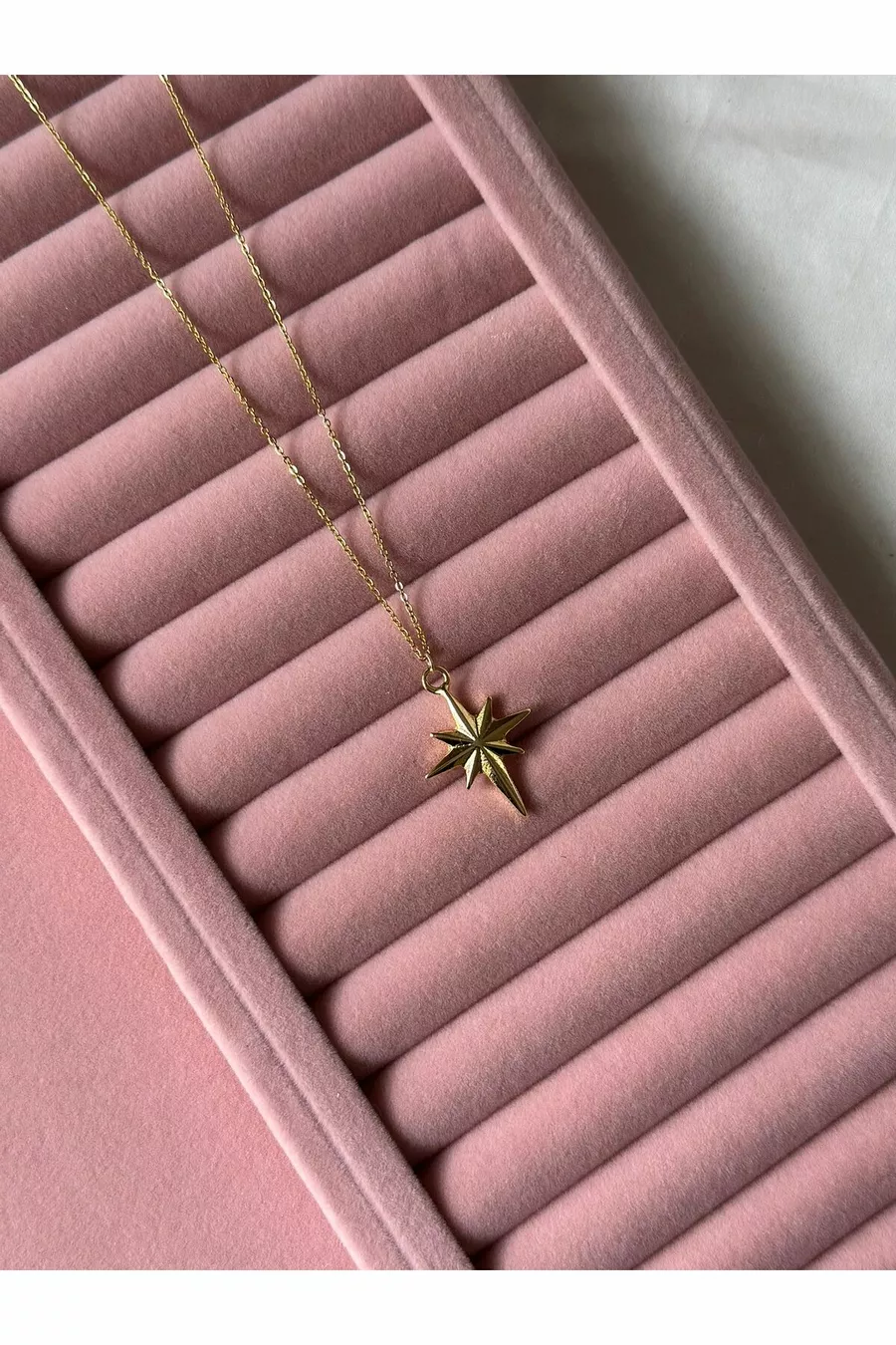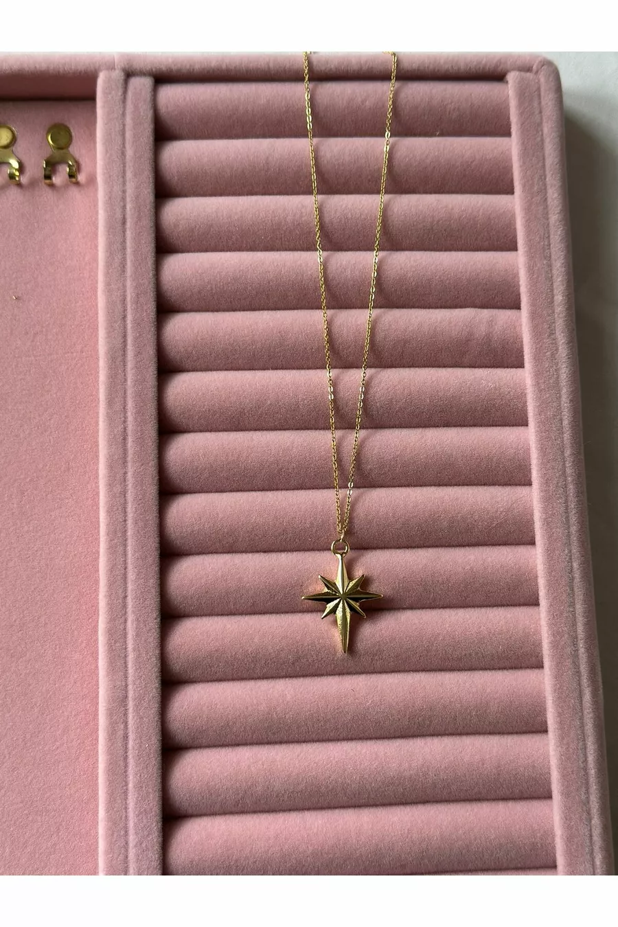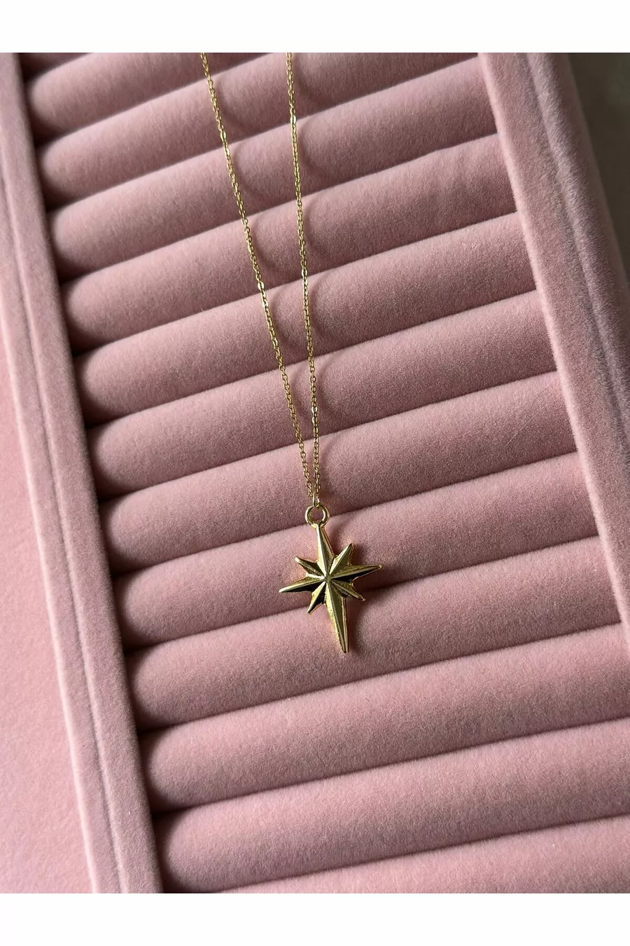 Collana in Acciaio con Placcatura in Oro K e Stella Polare