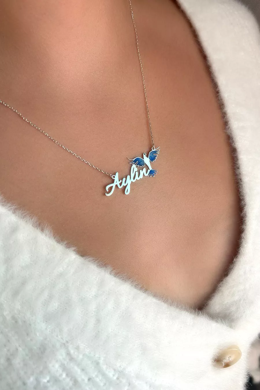 Collana personalizzata con nome in argento con design Fenice – Collana da donna in argento regalo