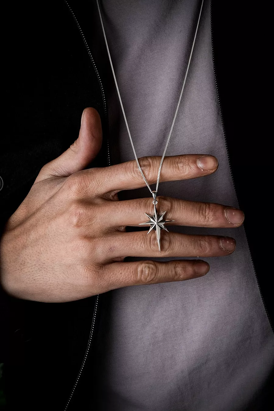 Collana Unisex Stella Polare in Argento con Ciondolo a Forma di Stella Polare