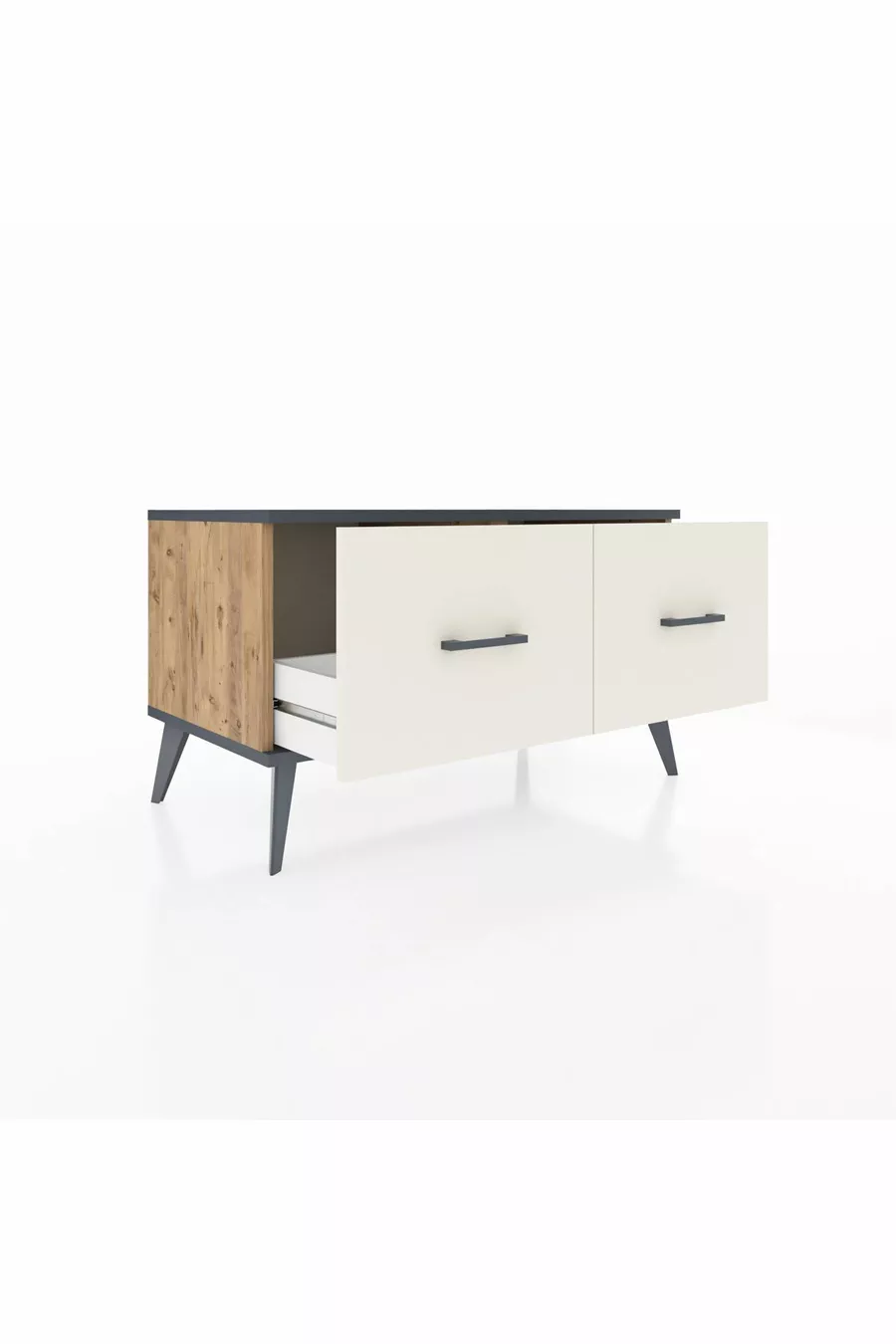 Colore: Bianco Materiale: Truciolare laminato Altezza: 48 cm Larghezza: 88 cm Profondità: 44 cm Numero di cassetti: 2 Caratteristica del prodotto: Con ante Stile: Moderno Tema / Stile: Moderno Provenienza: TR