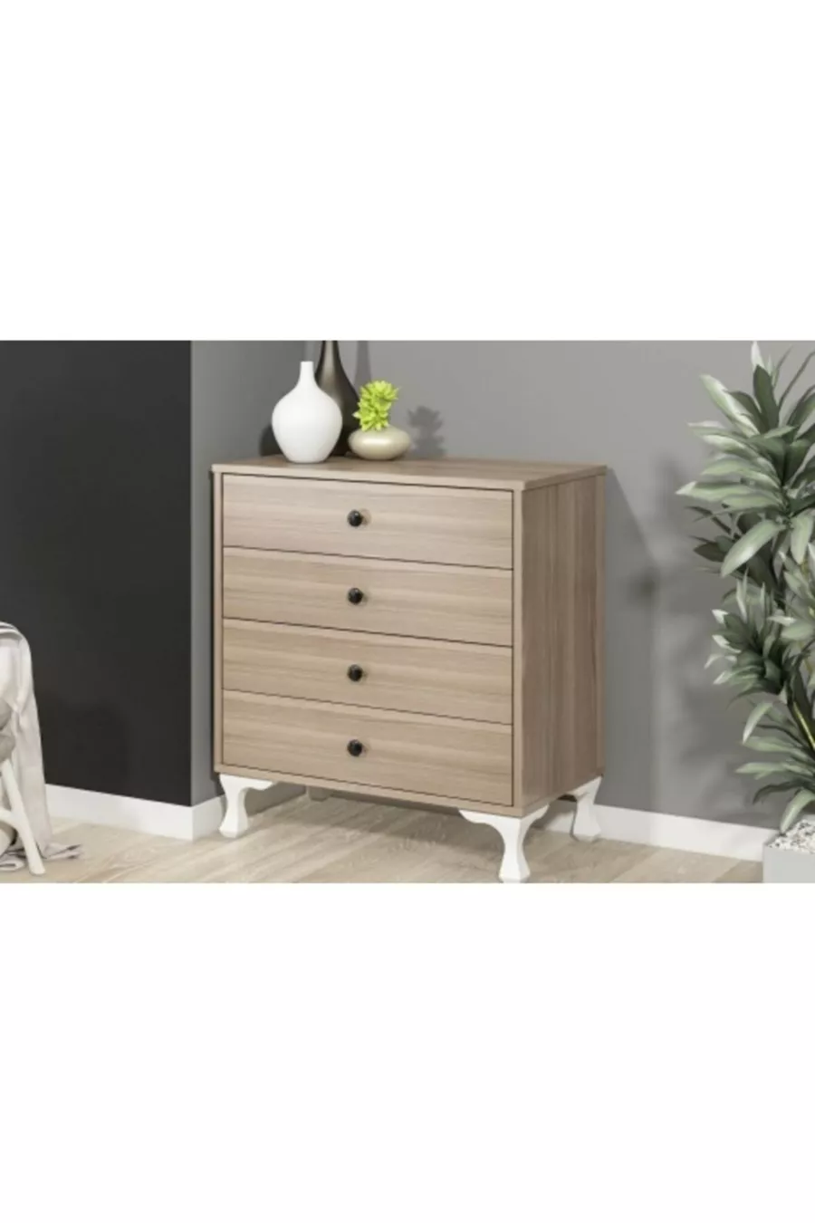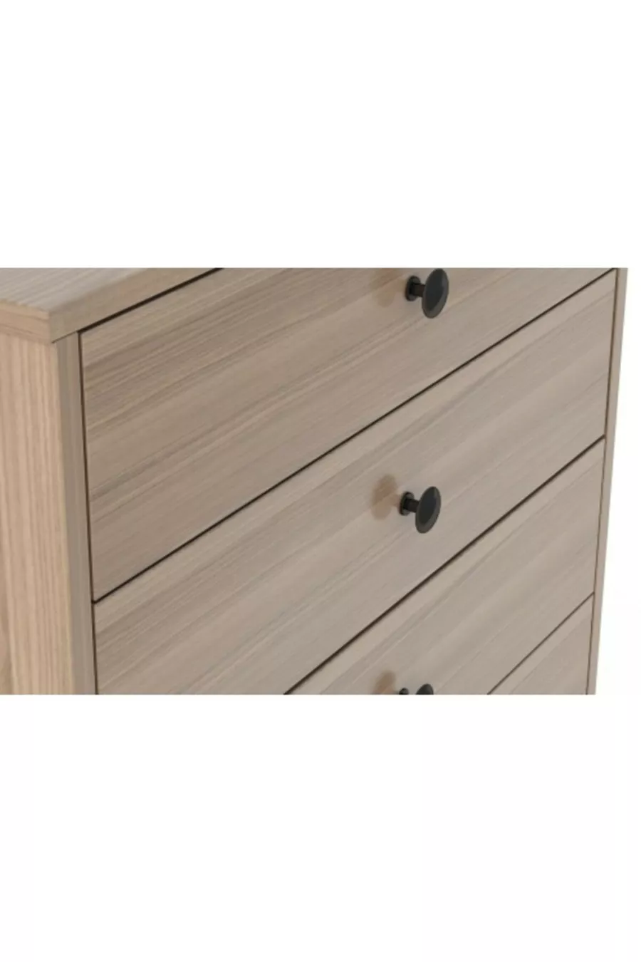 Colore: Marrone Materiale: Truciolato impiallacciato Altezza: 81 cm Larghezza: 73 cm Profondità: 40 cm Numero di cassetti: 3 Caratteristica del prodotto: Con cassetti Stile: Scandinavo