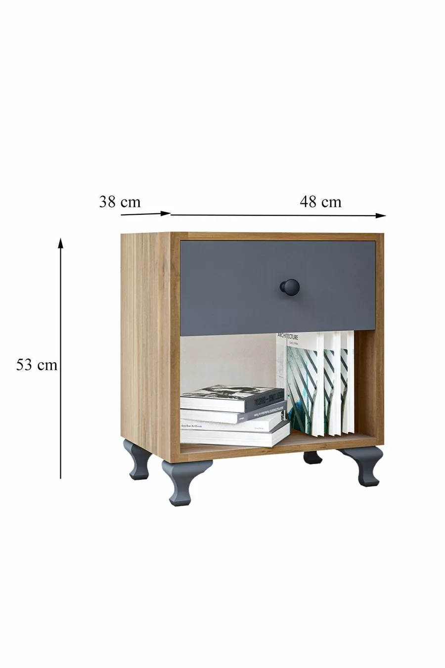 Materiale: Suntalam Colore: Marrone Durata della garanzia: 2 anni Numero di cassetti: 1 Altezza: 53 cm Larghezza: 43 cm Profondità: 38 cm Stile: Moderno
