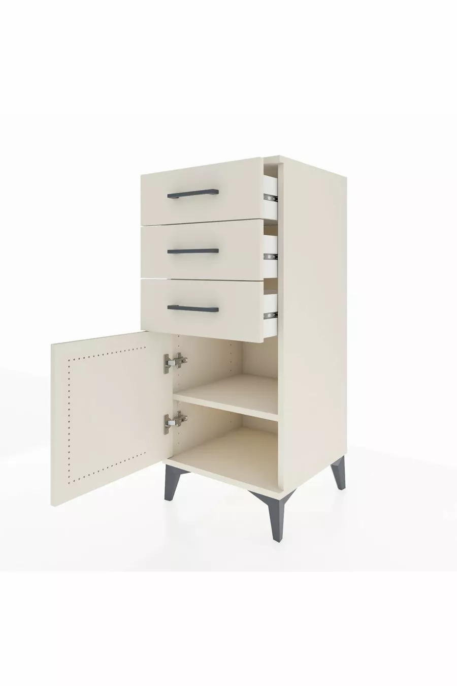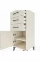 Comodino Hyperion con un ripiano, 3 cassetti e una porta, color Pietra di Luna