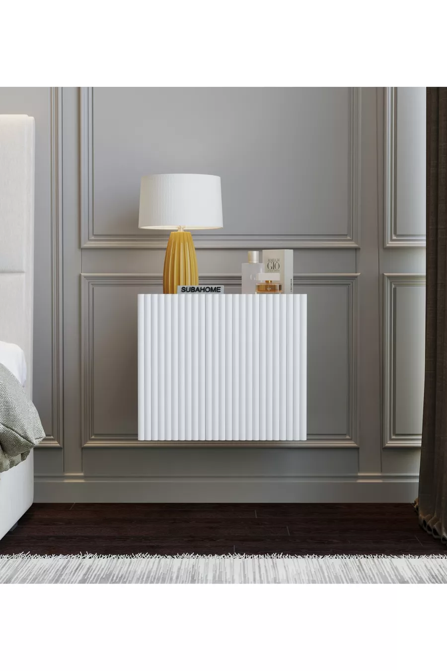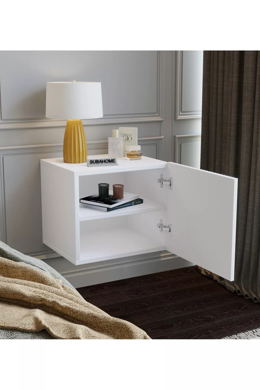 Comodino moderno multifunzionale da montare a parete in MDF con anta bianca elegante