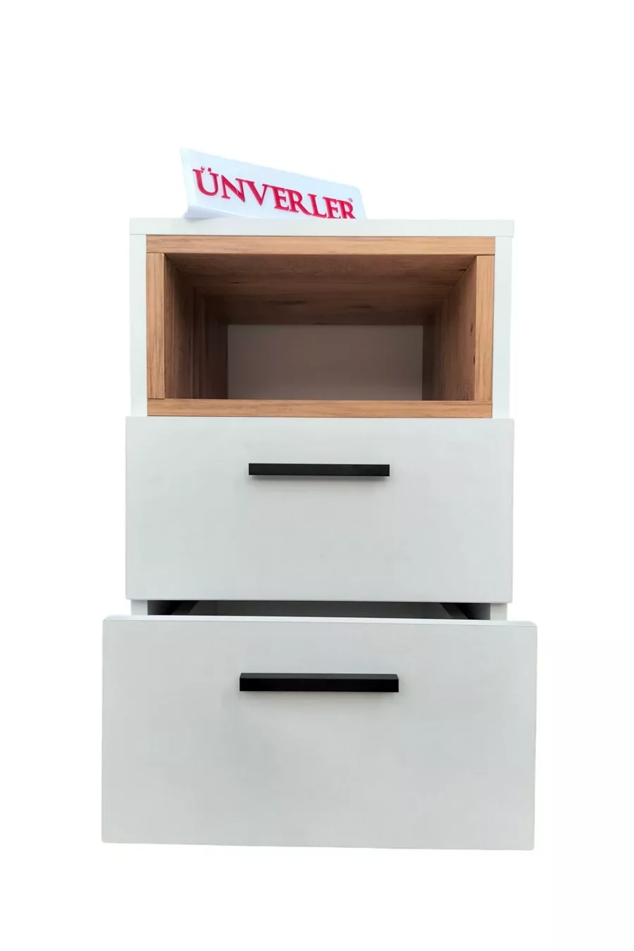Materiale: Truciolato laminato Colore: Bianco Periodo di garanzia: Senza garanzia Numero di cassetti: 2 Altezza: 61 cm Larghezza: 40 cm Profondità: 38 cm Stile: Moderno Tema / Stile: Moderno