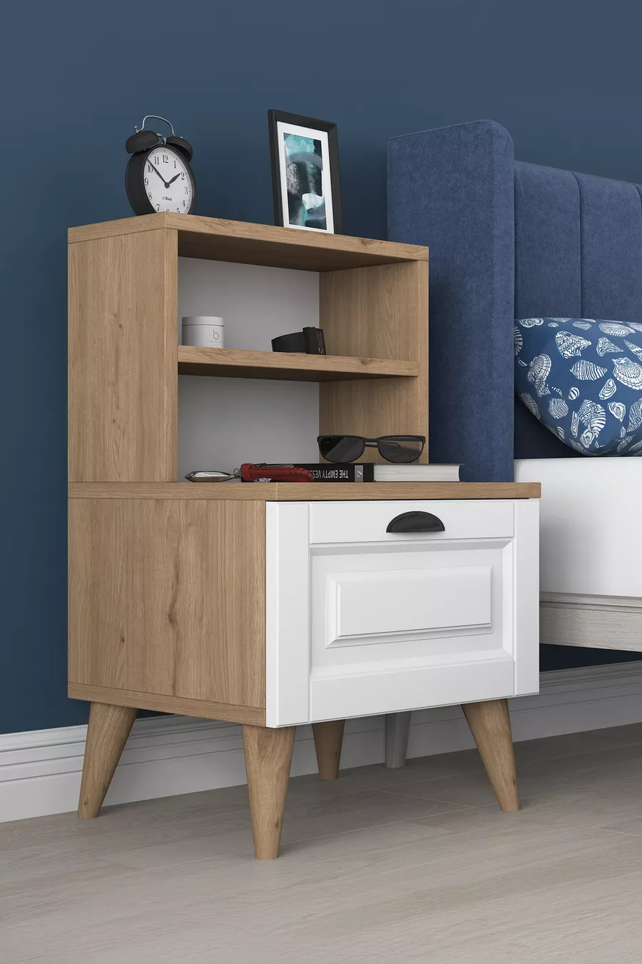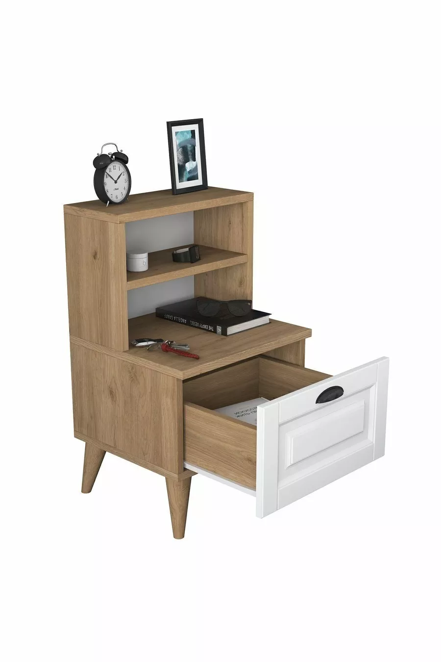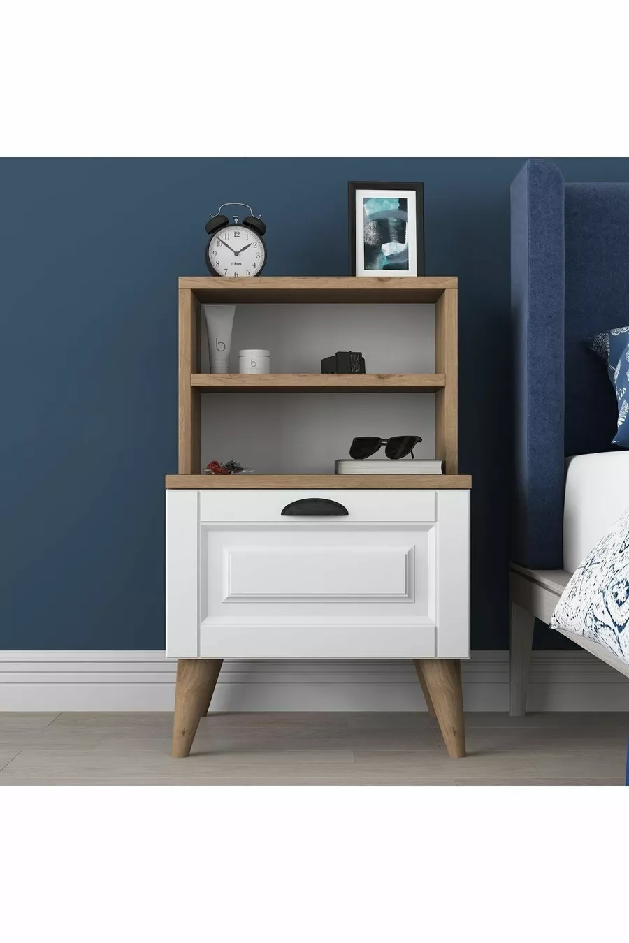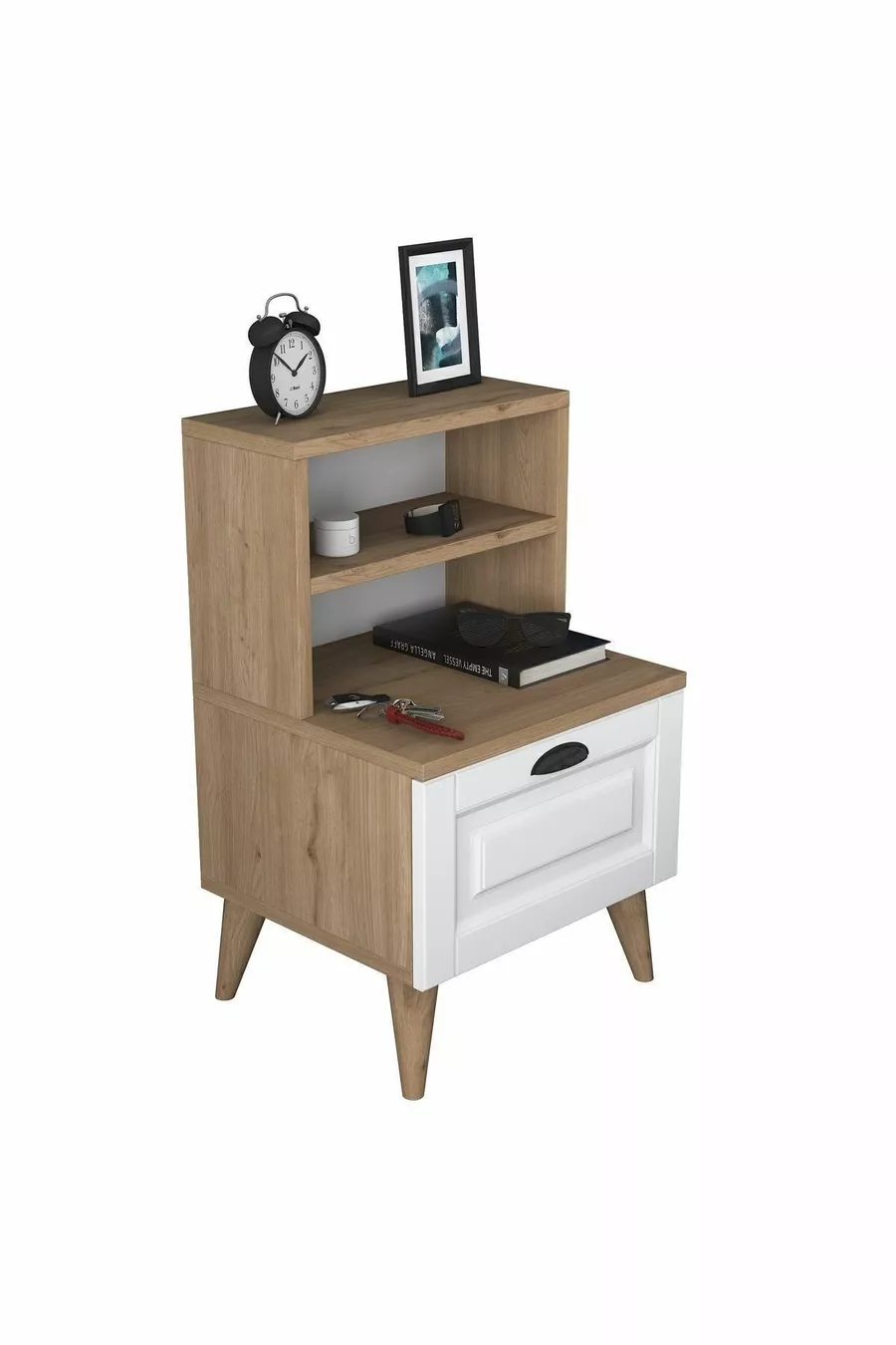 Materiale: Pannello MDF laminato Colore: Bianco Periodo di garanzia: 2 anni Numero di cassetti: 1 Altezza: 75 cm Larghezza: 45 cm Profondità: 40 cm Stile: Scandinavo Tema / Stile: Moderno Origine: TR Caratteristica: Con cassetti