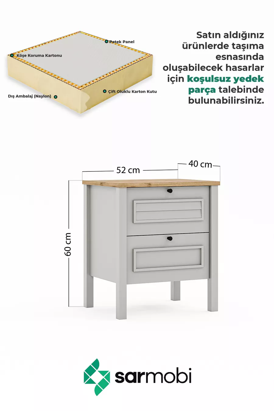 Materiale: Suntalam Colore: Grigio Periodo di garanzia: 2 anni Numero di cassetti: 2 Altezza: 60 cm Larghezza: 52 cm Profondità: 40 cm Stile: Retrò Tema / Stile: Retrò Origine: TR Caratteristica: Con cassetti
