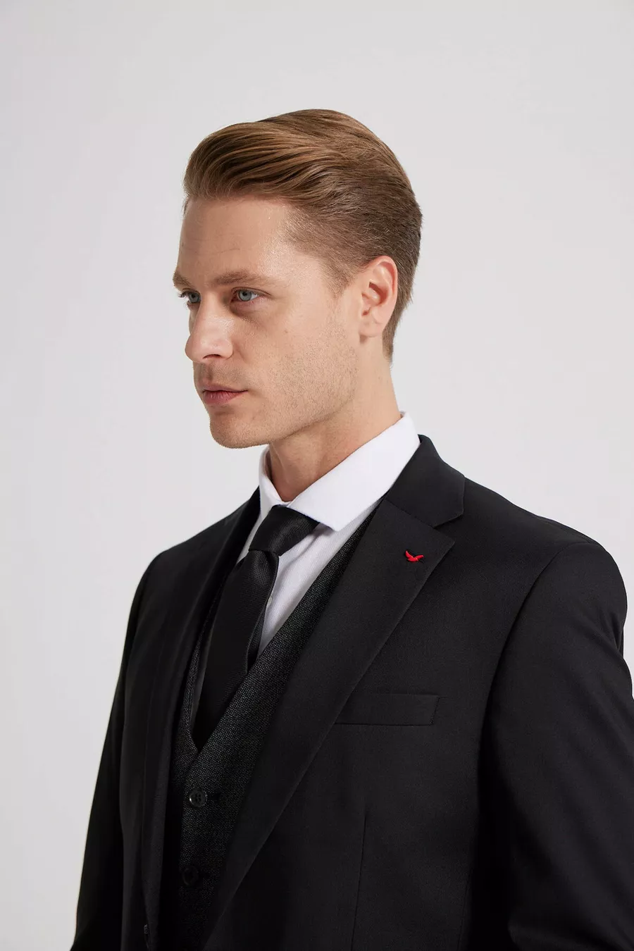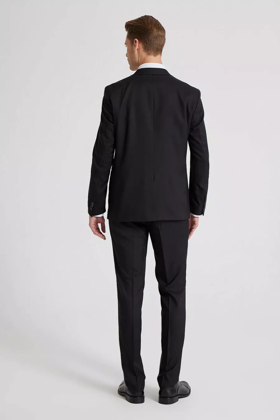 Completo Abito Slim Fit Nero con Collo Monopetto, Spacco Singolo e Fodera