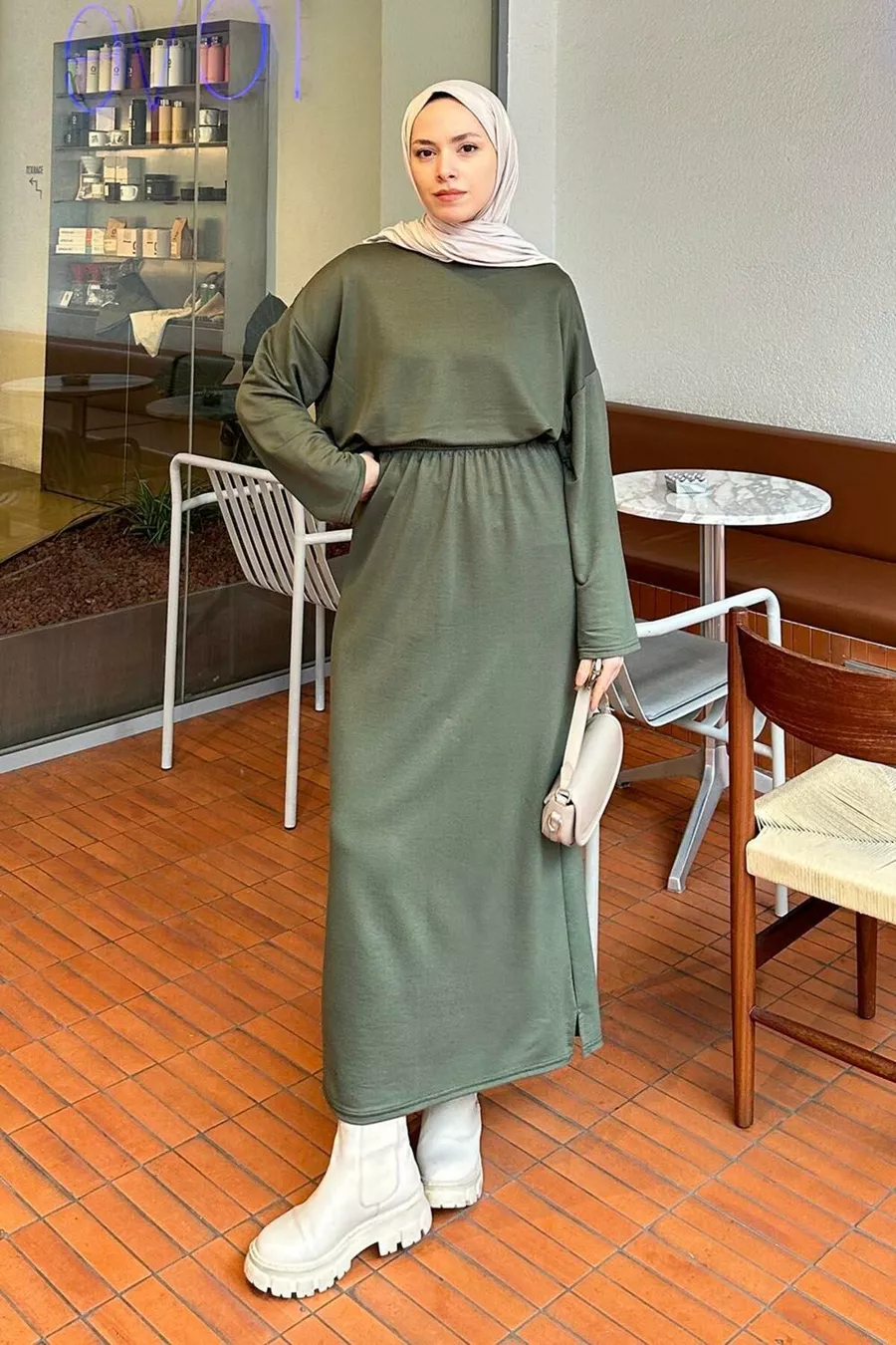 Completo con Gonna di Cristallo Verde Scuro