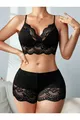 Completo da donna con top in pizzo nero e pantaloncini in maglia