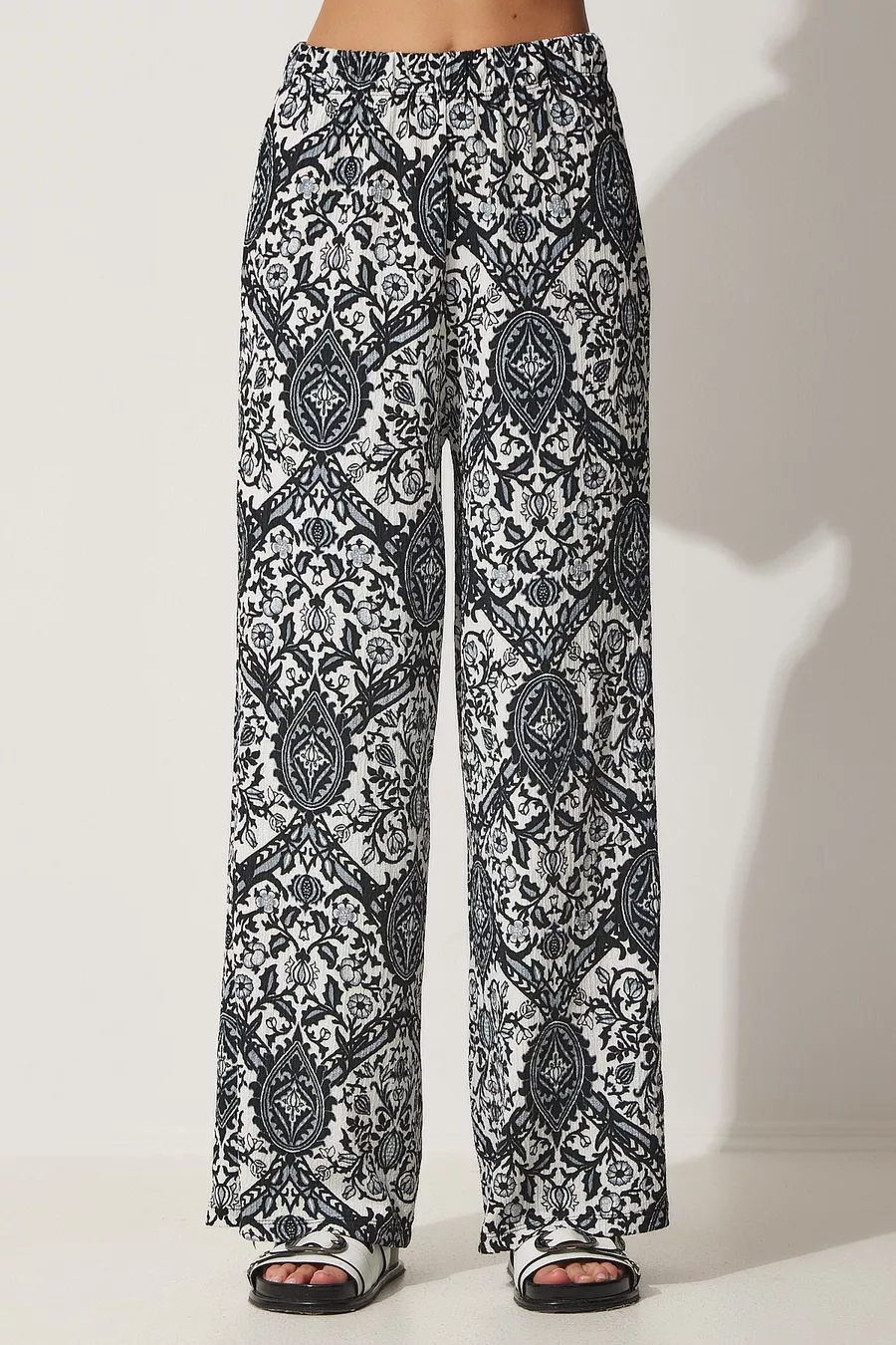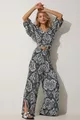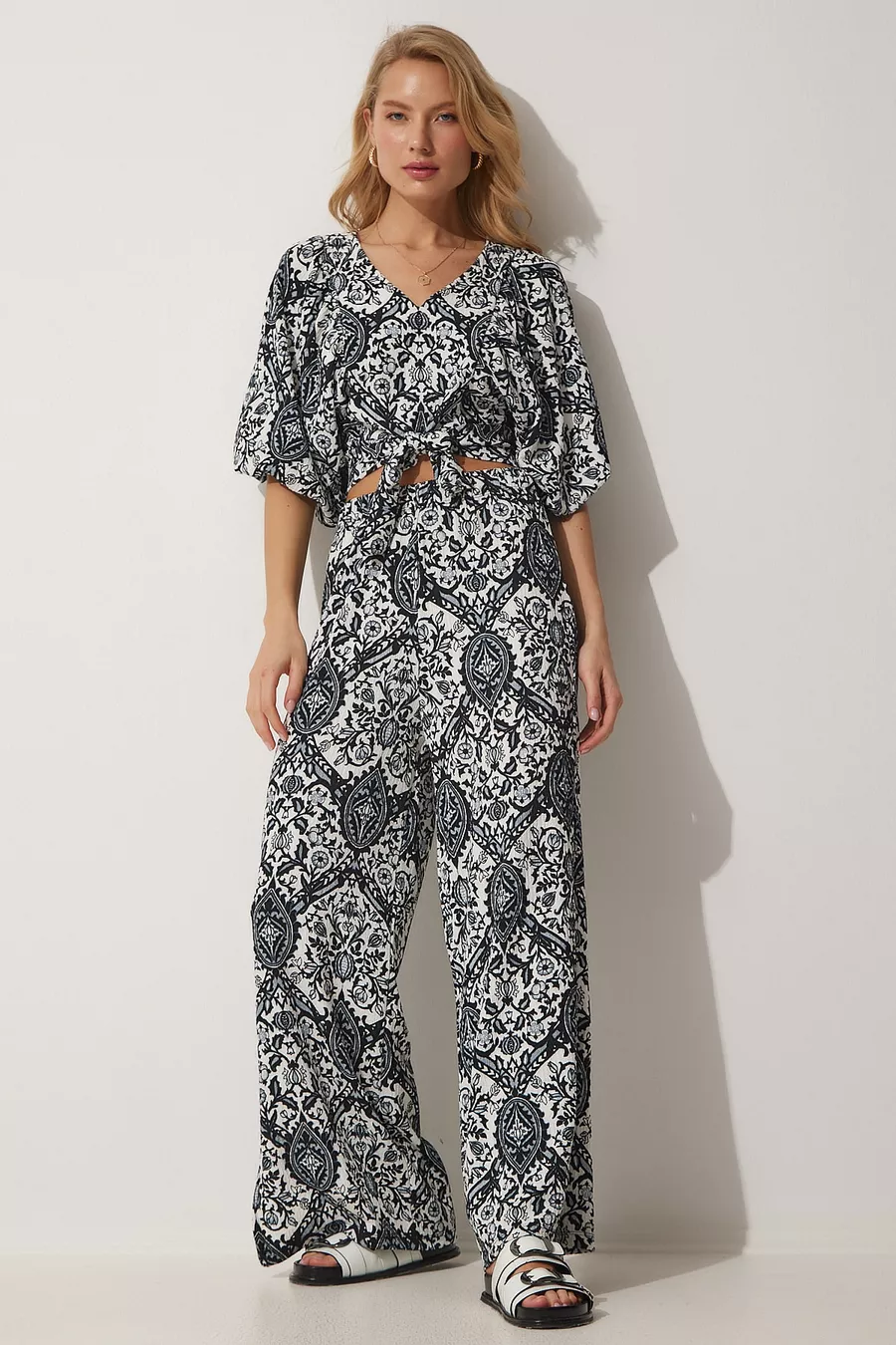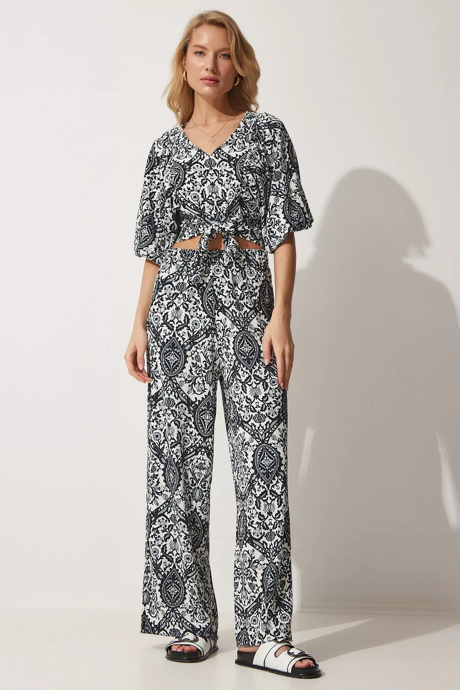 Completo Donna Camicia a Fantasia Bianco e Nero con Pantaloni Larghi