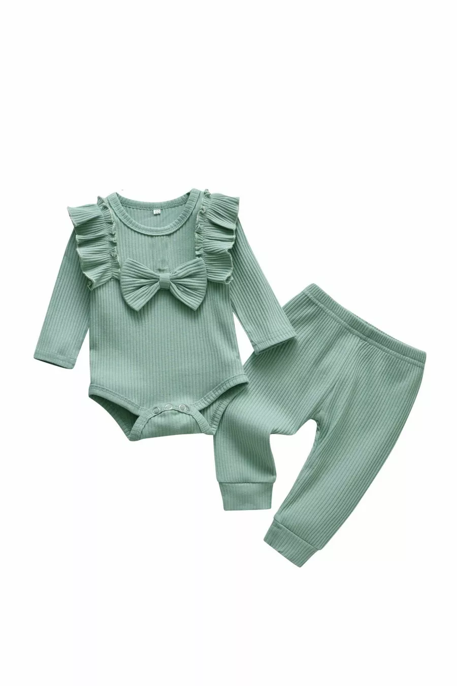 Completo per bambina in maglia costina con fiocco, % cotone, colore menta