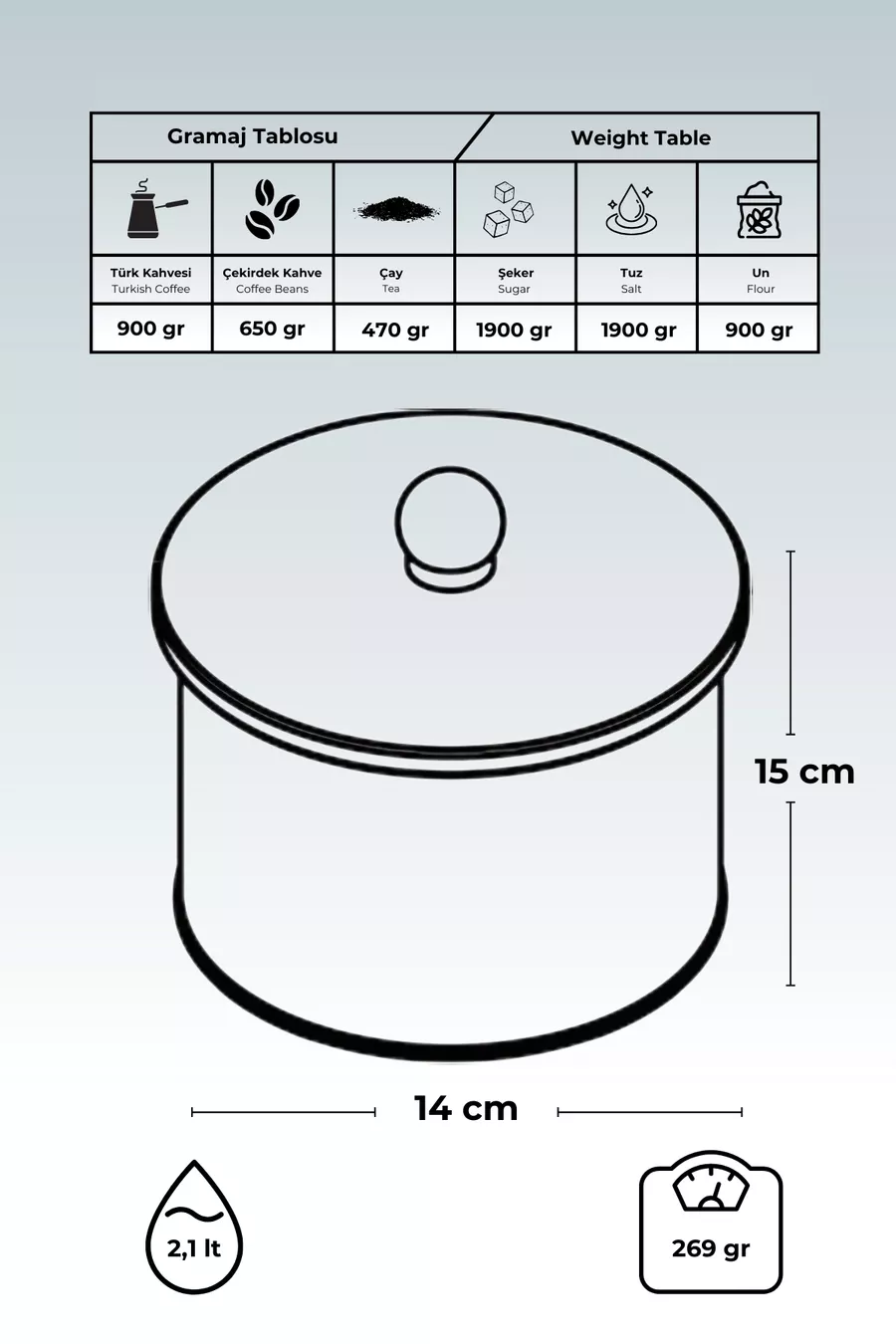 Contenitore in metallo rotondo con motivo Tales, contenitore per alimenti x cm, 2,1 litri, -9a