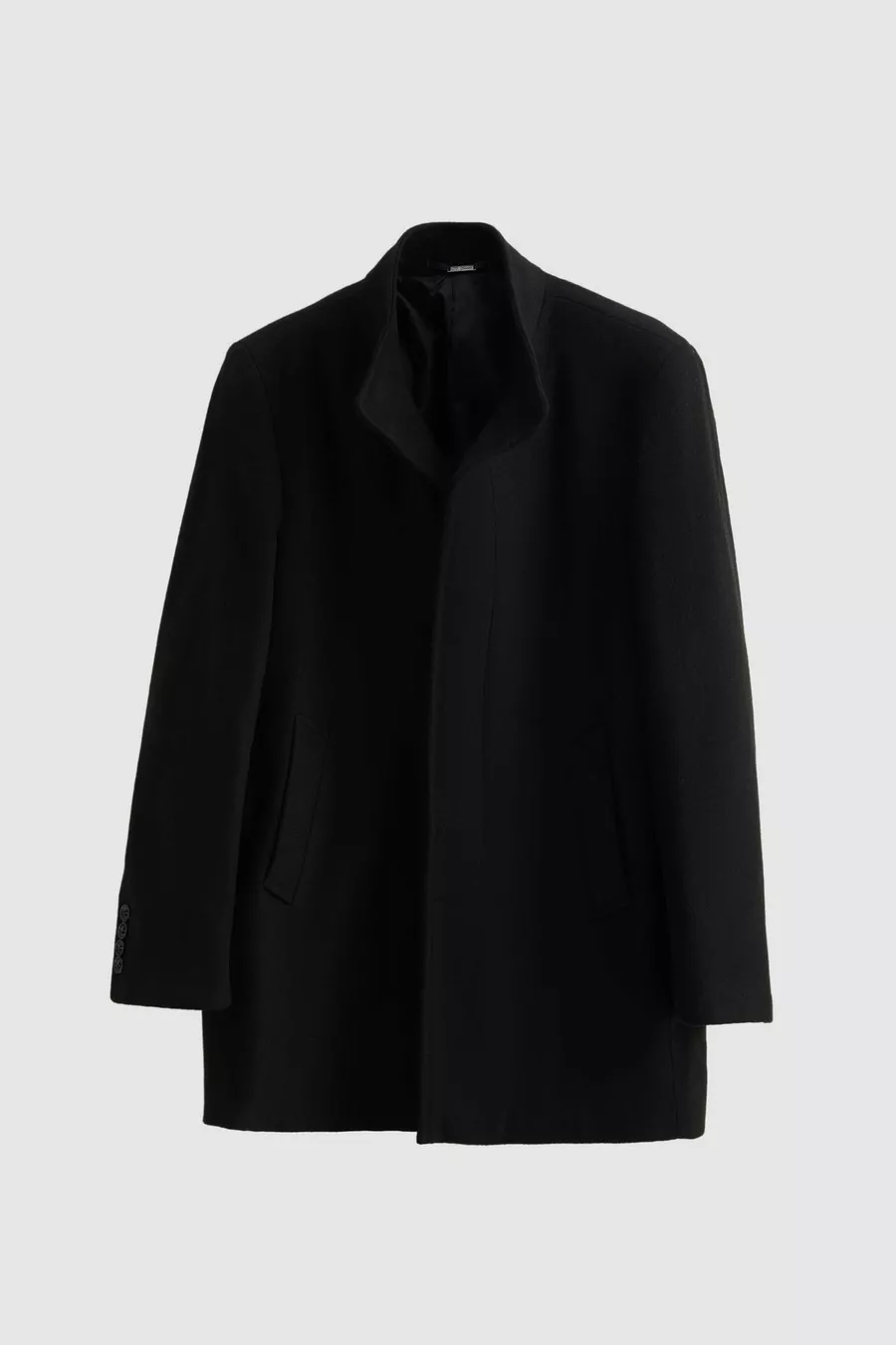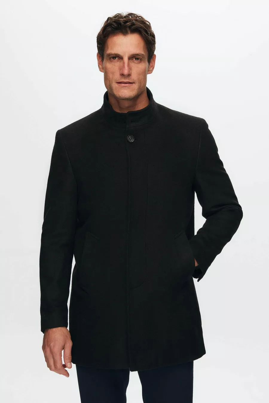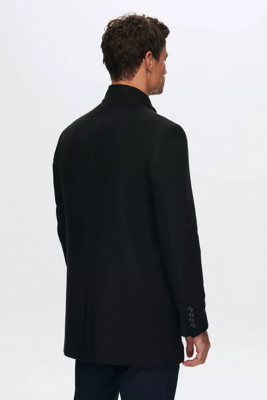 Ds Damat Cappotto in Panno Nero Regular Fit con Colletto alla Coreana
