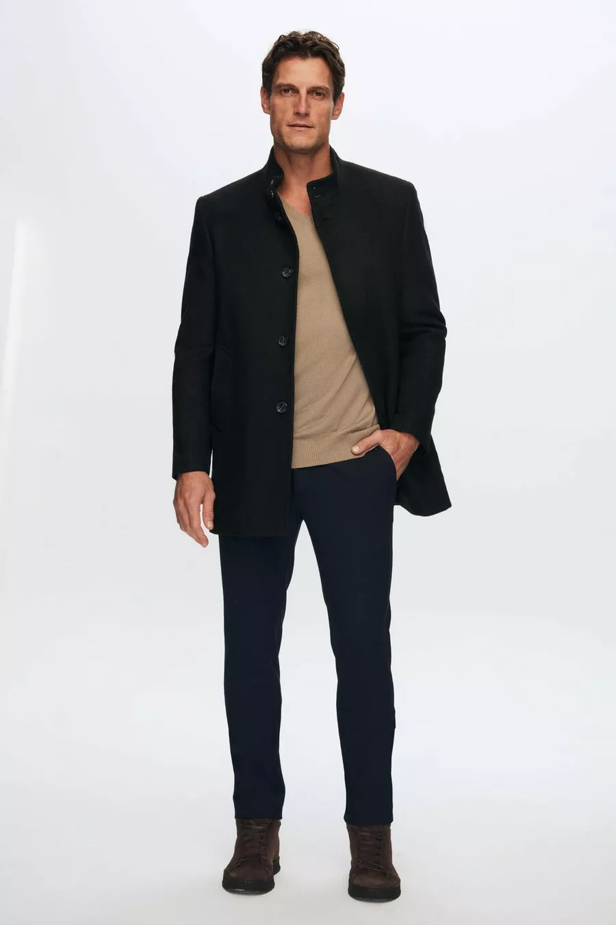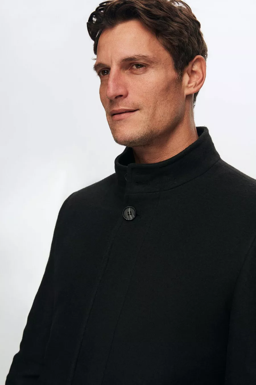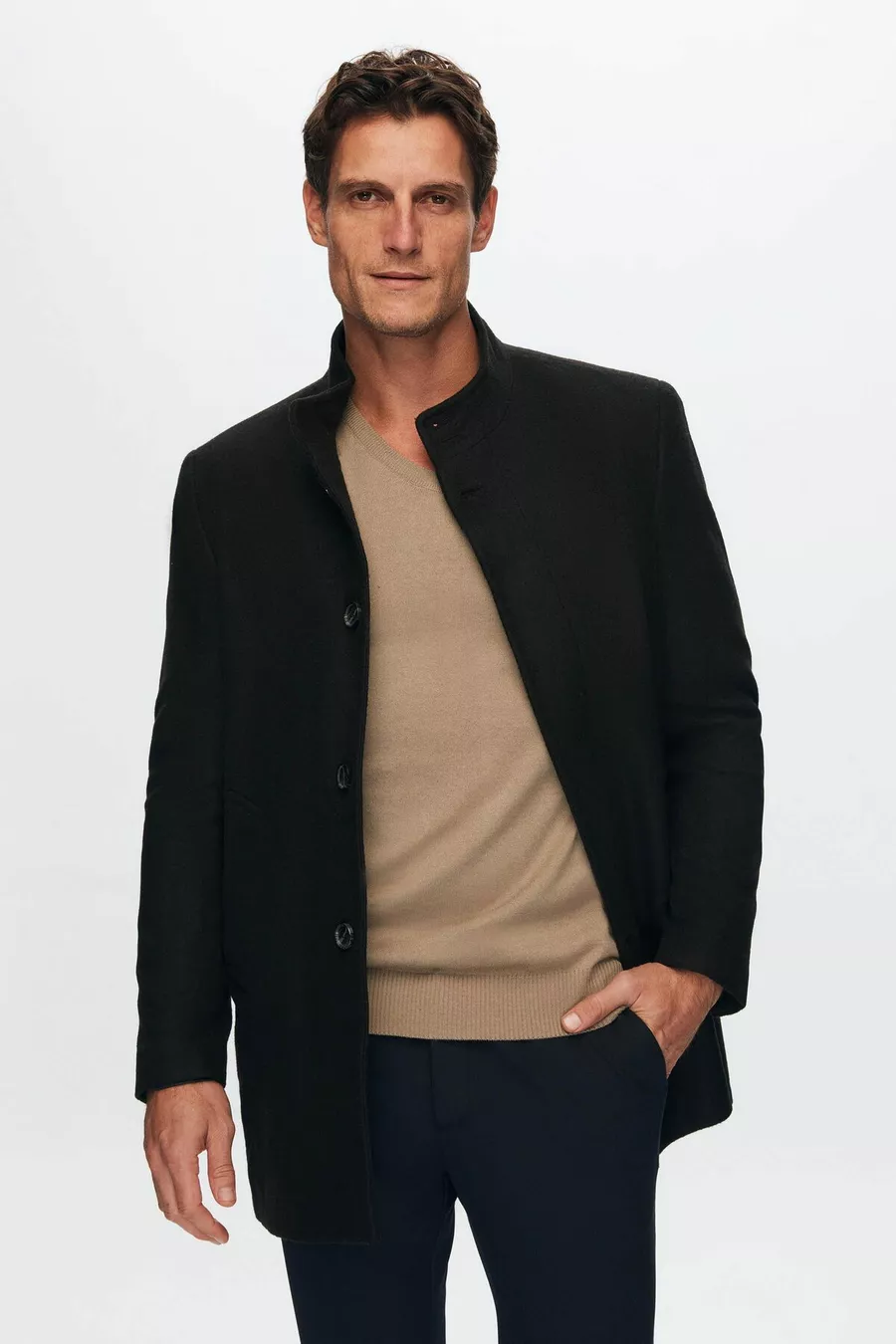 Ds Damat Cappotto in Panno Nero Regular Fit con Colletto alla Coreana