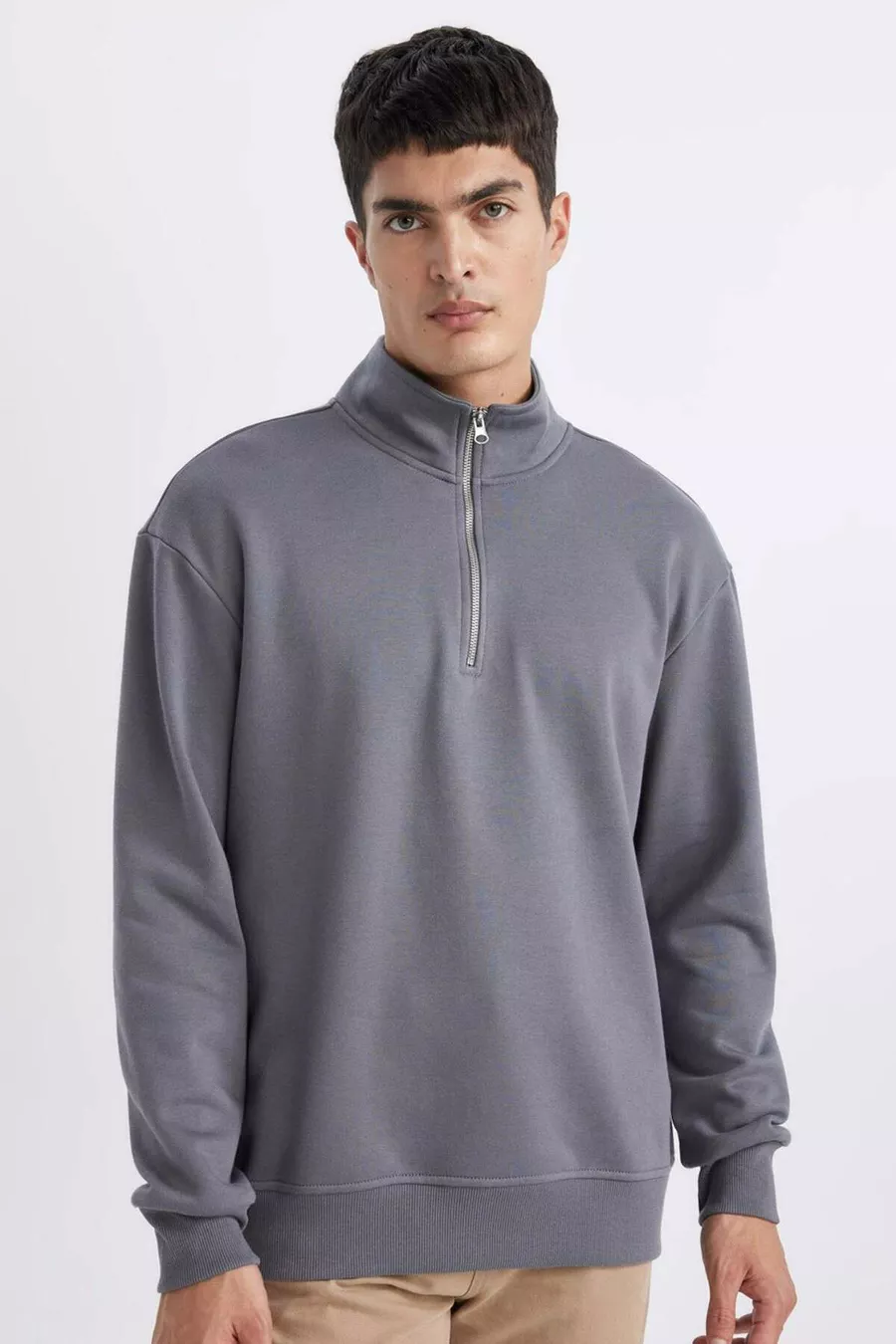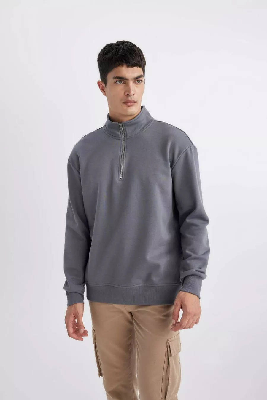 Felpa Basic con Zip Collo Alto Comfort Regular Fit, Vestibilità Comoda SP