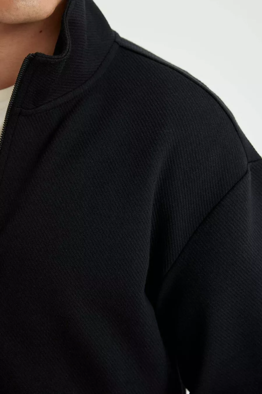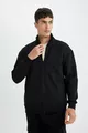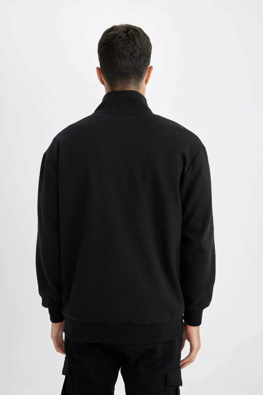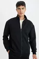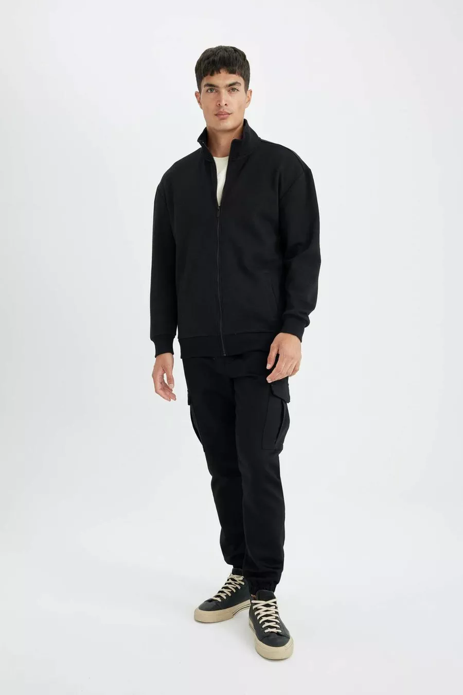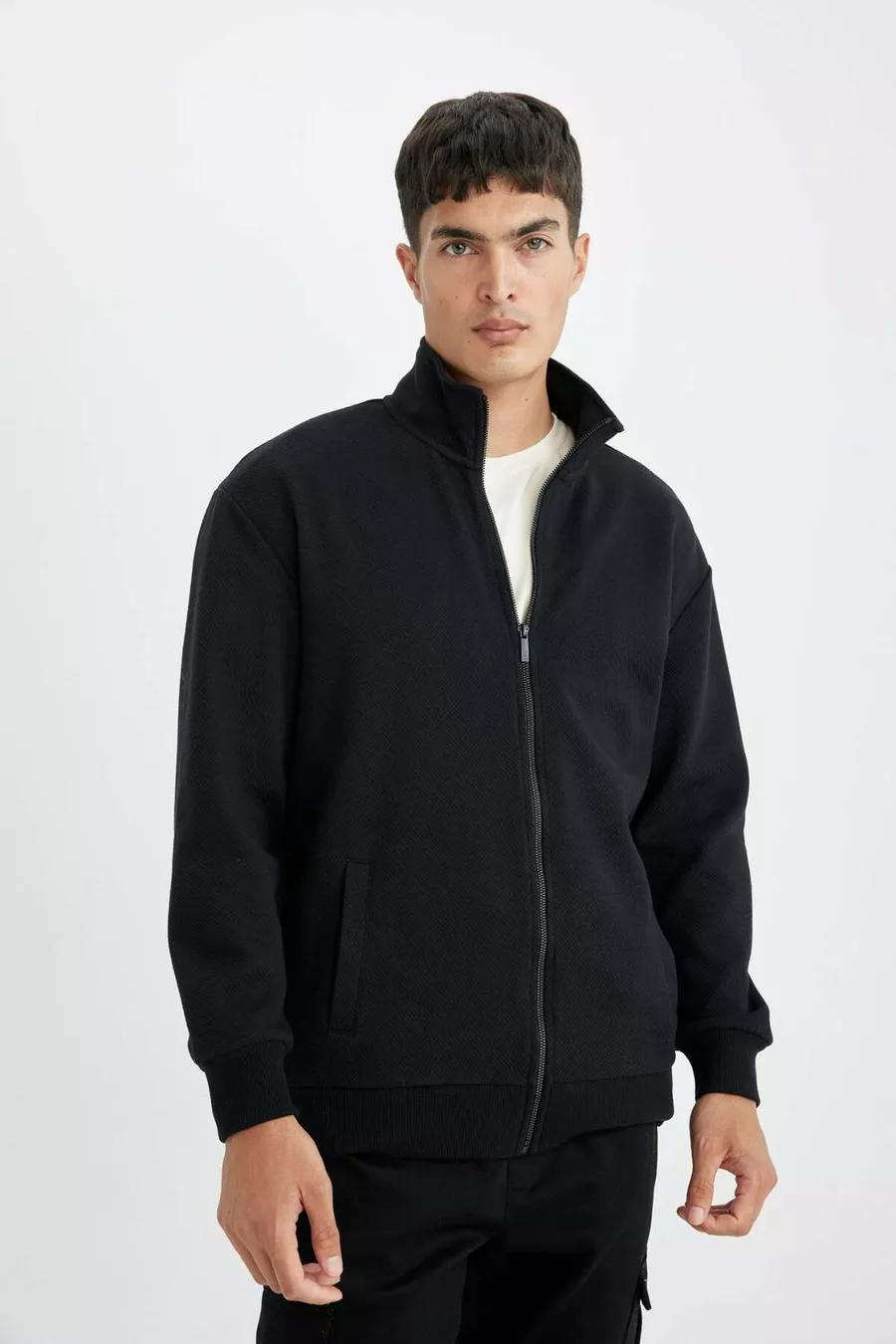 Felpa Basic con Zip Dritta Comfort Regular Fit Collo Alto Tasche AU