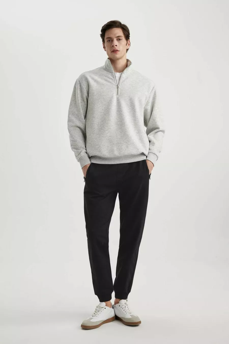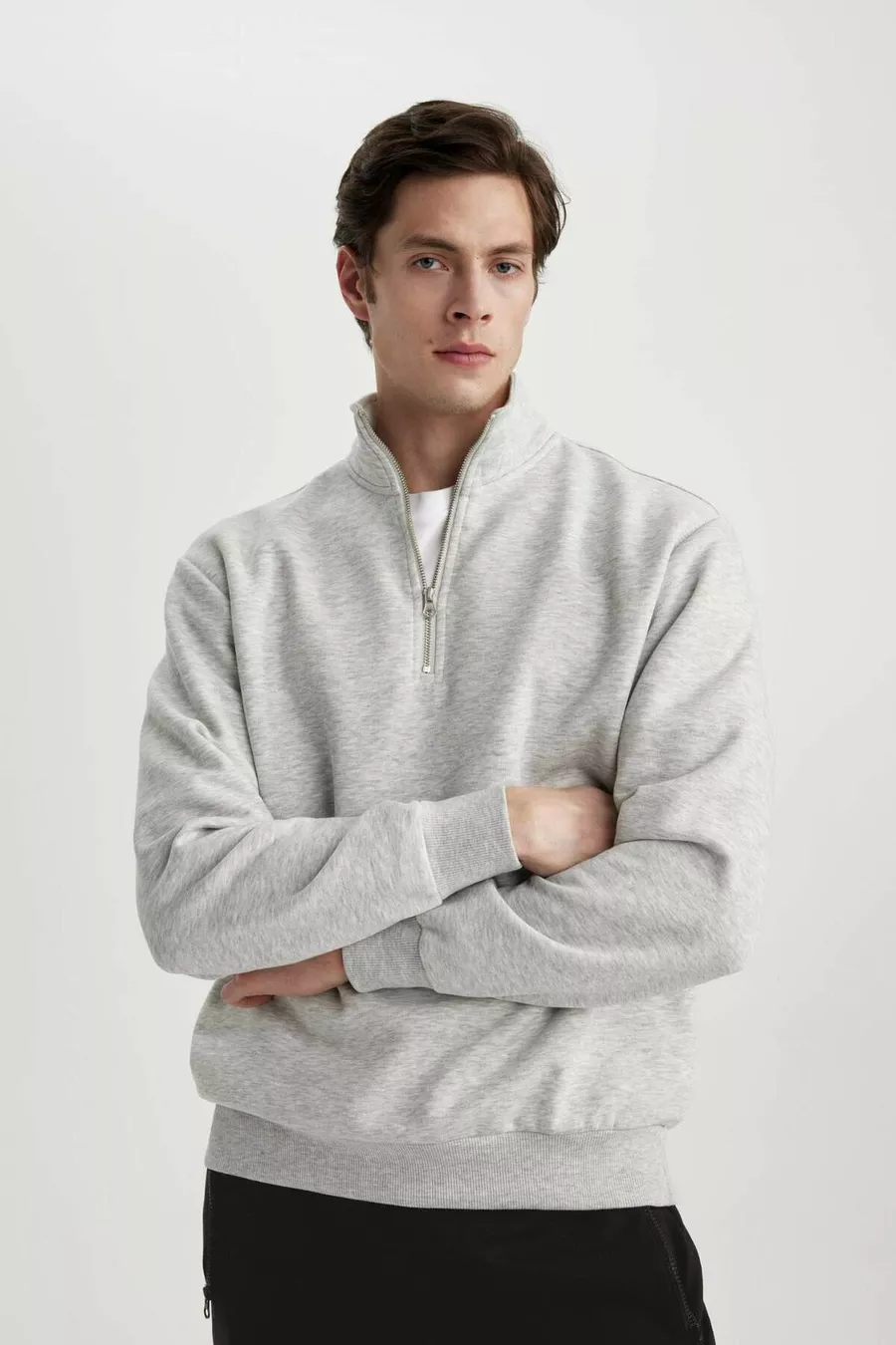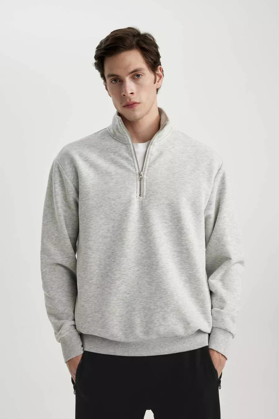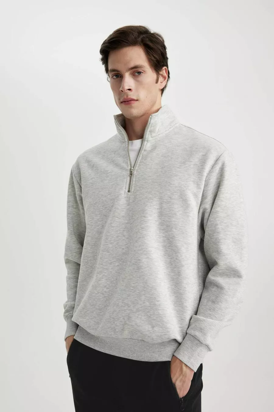 Felpa Basic Oversize con Zip e Collo Alto, Taglio Ampio WN