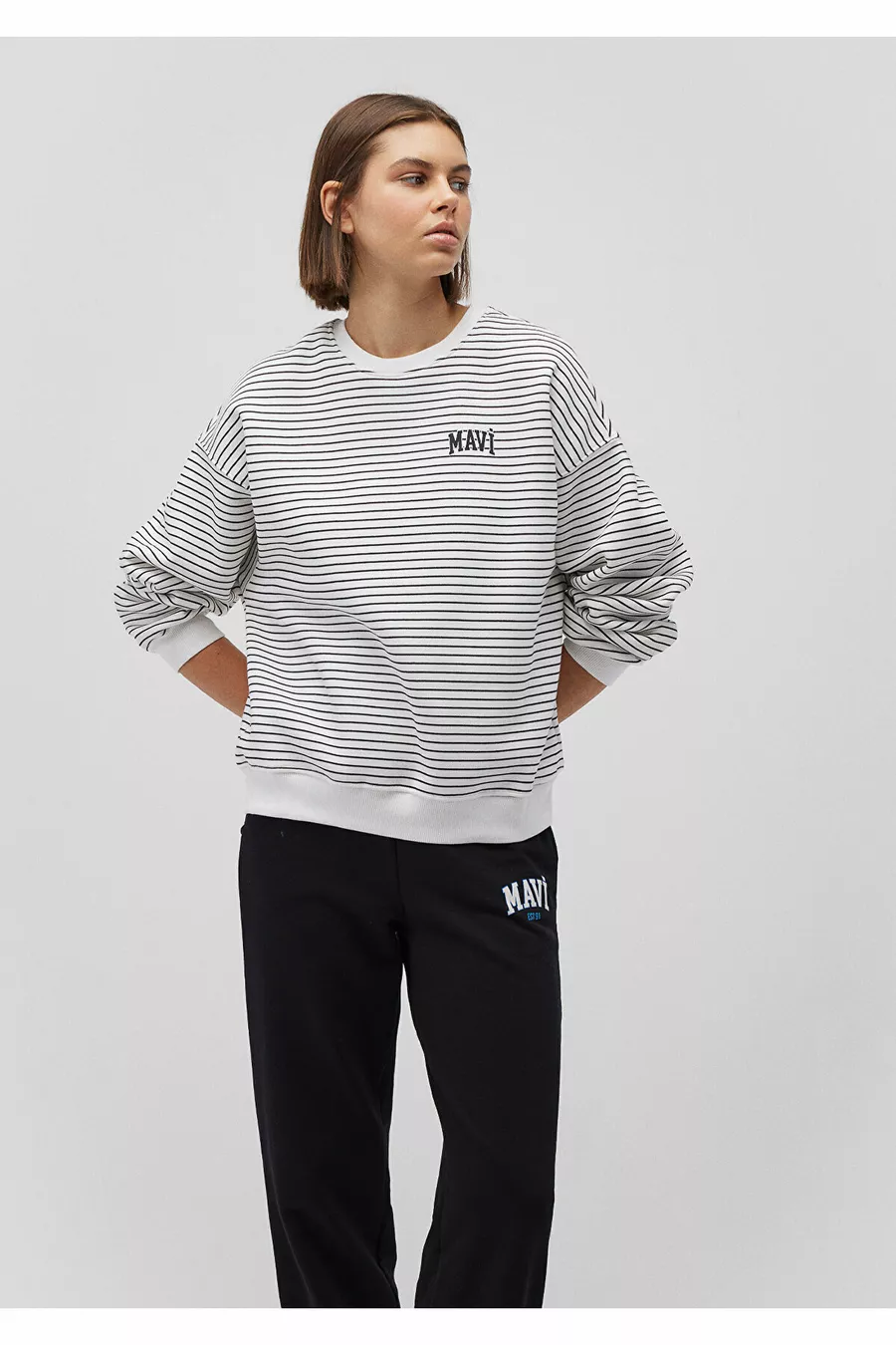 Felpa Bianca a Righe con Logo