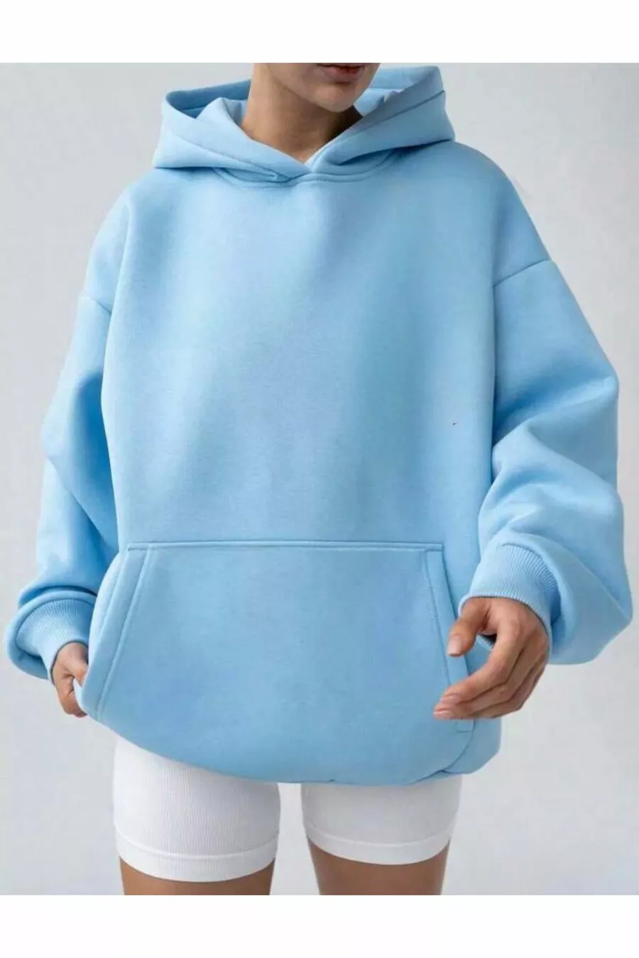 Felpa con Cappuccio e Tasca a Marsupio Azzurro Chiaro