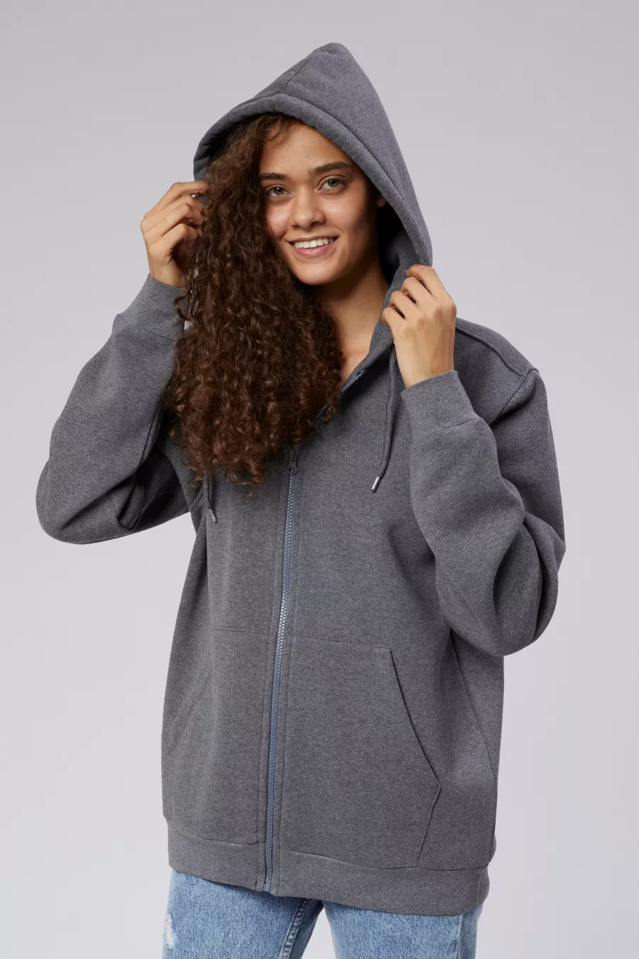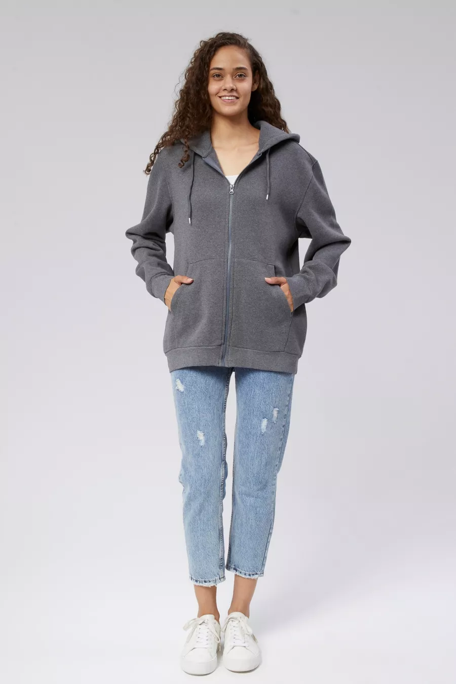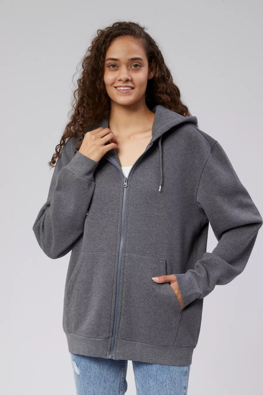 Felpa con Cappuccio da Donna Mooncover con Tasca a Marsupio e Cerniera – Grigio Scuro