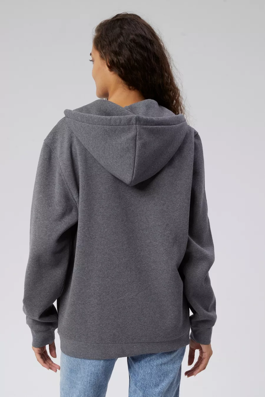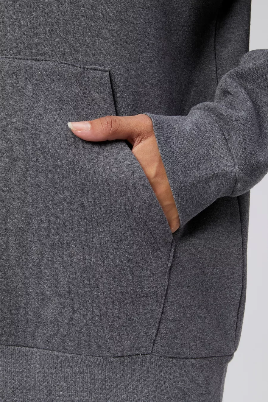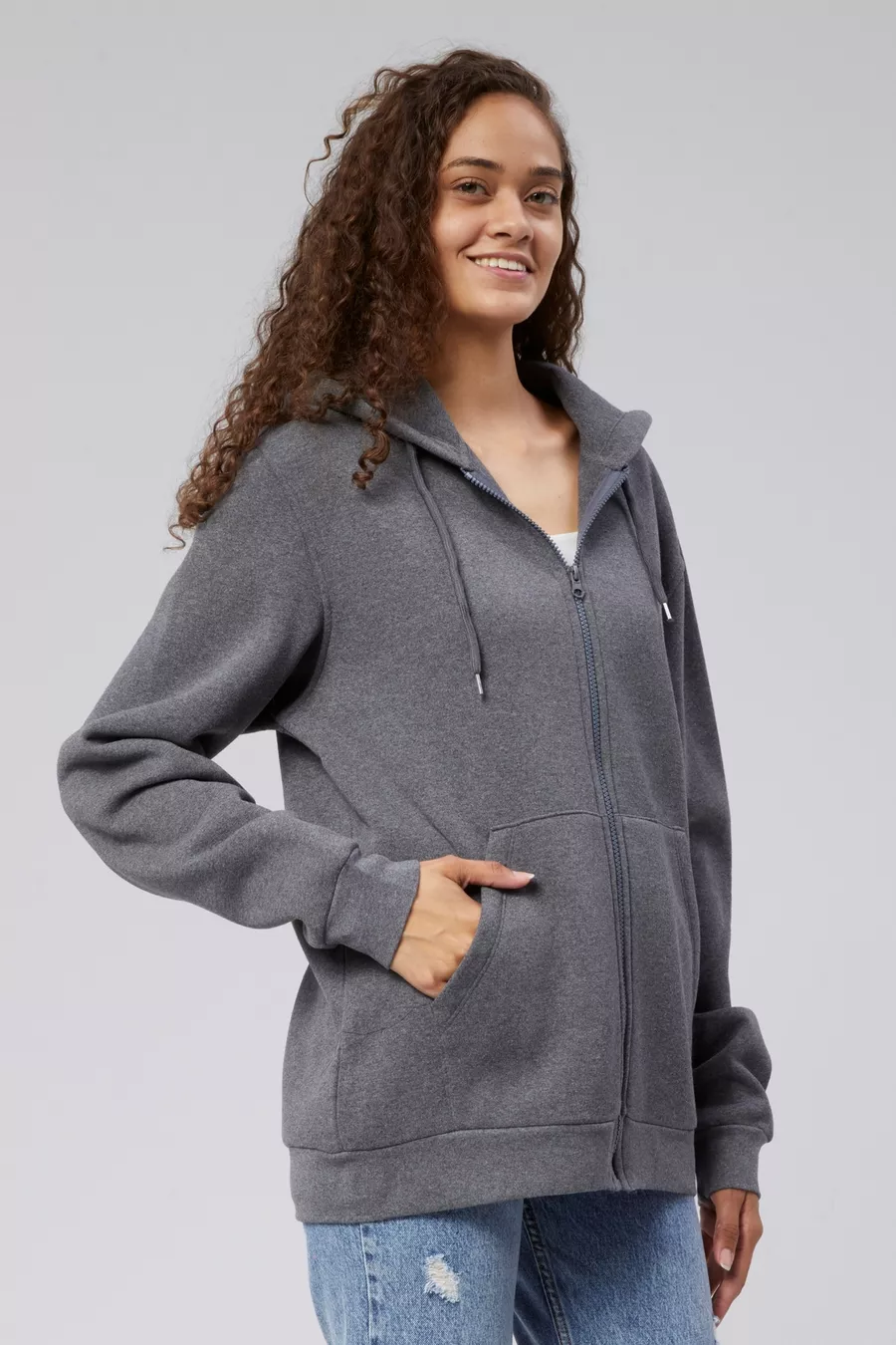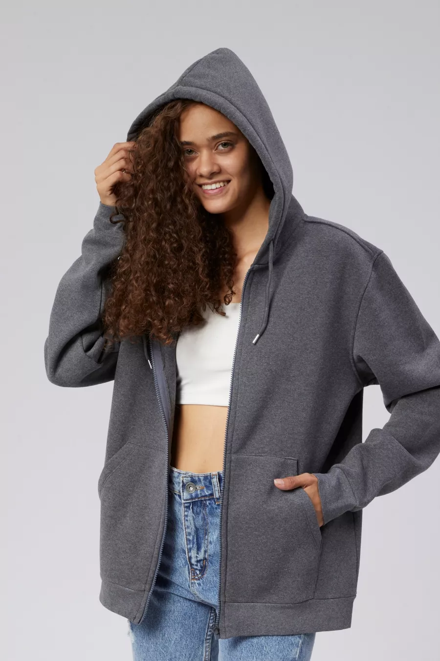 Felpa con Cappuccio da Donna Mooncover con Tasca a Marsupio e Cerniera – Grigio Scuro