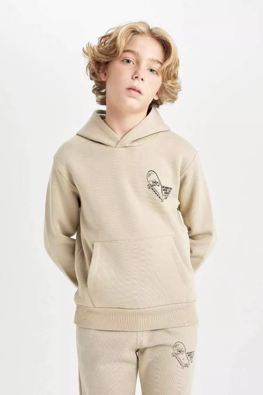 Felpa con Cappuccio da Scuola per Bambino con Tasca e Stampa Estiva AU