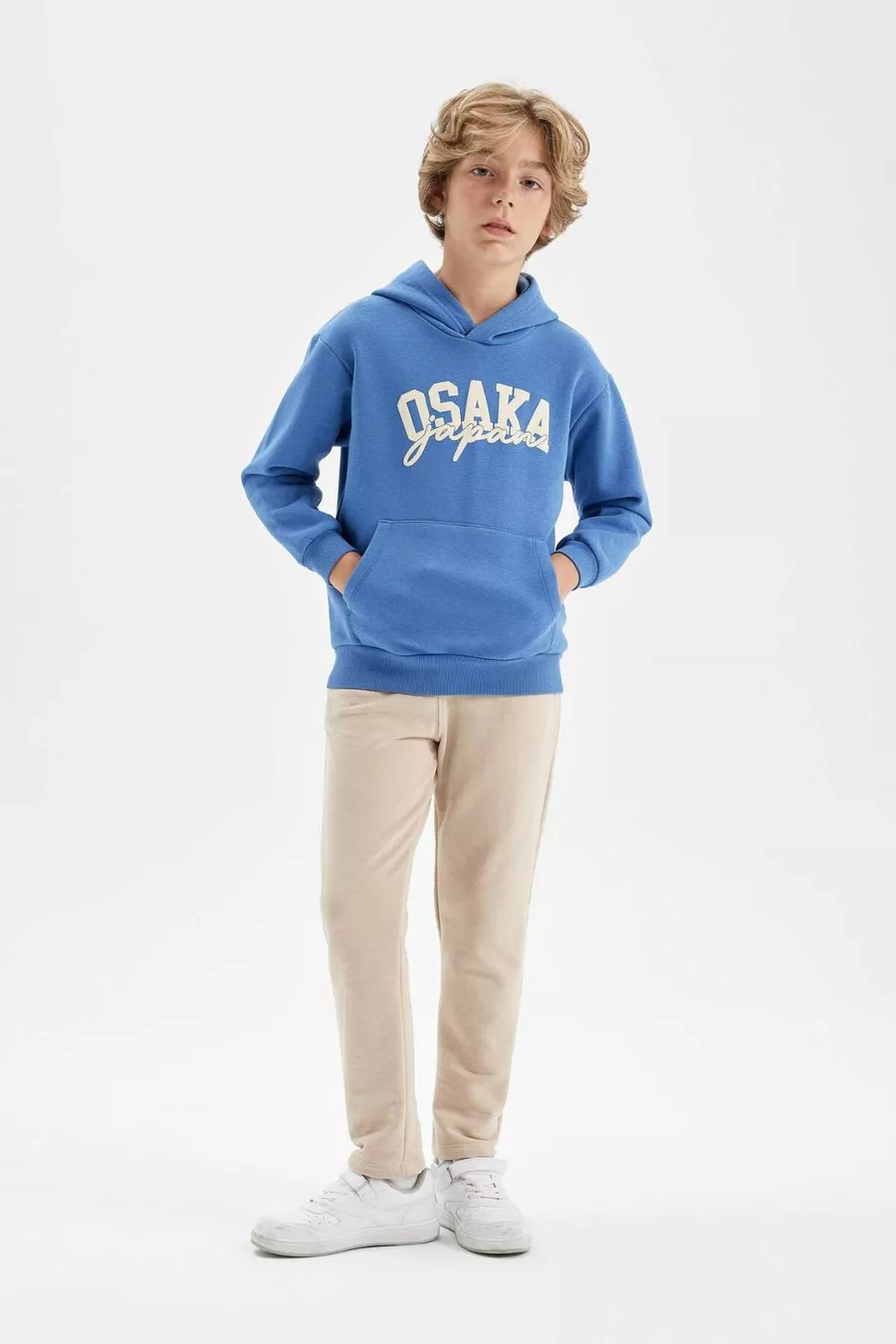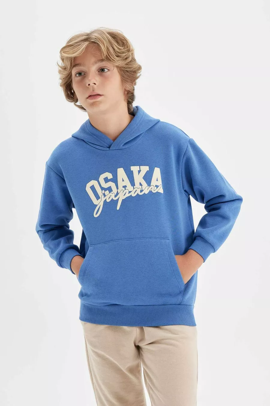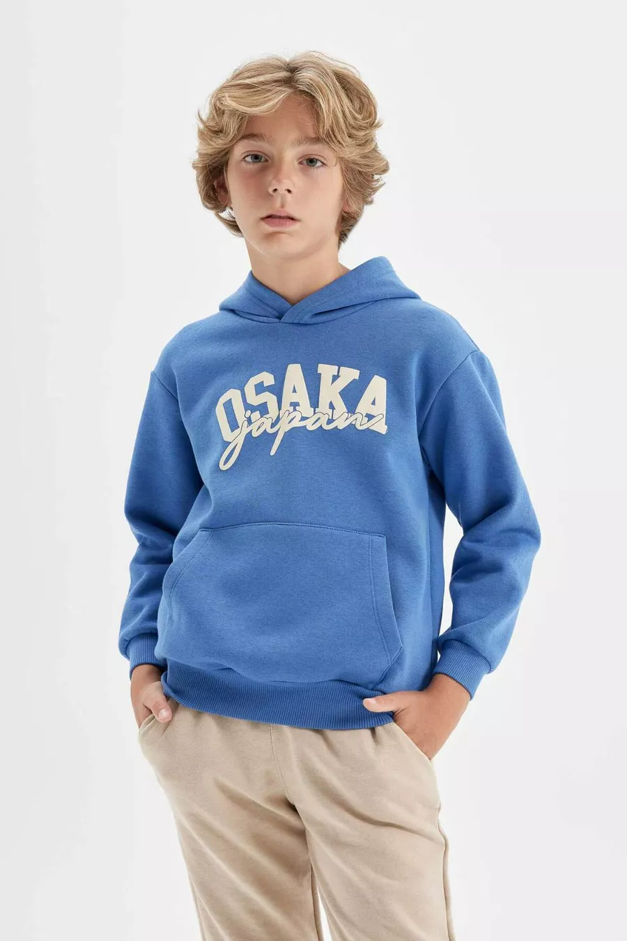 Felpa con Cappuccio e Tasche da Bambino Maschio con Stampa Blu AU