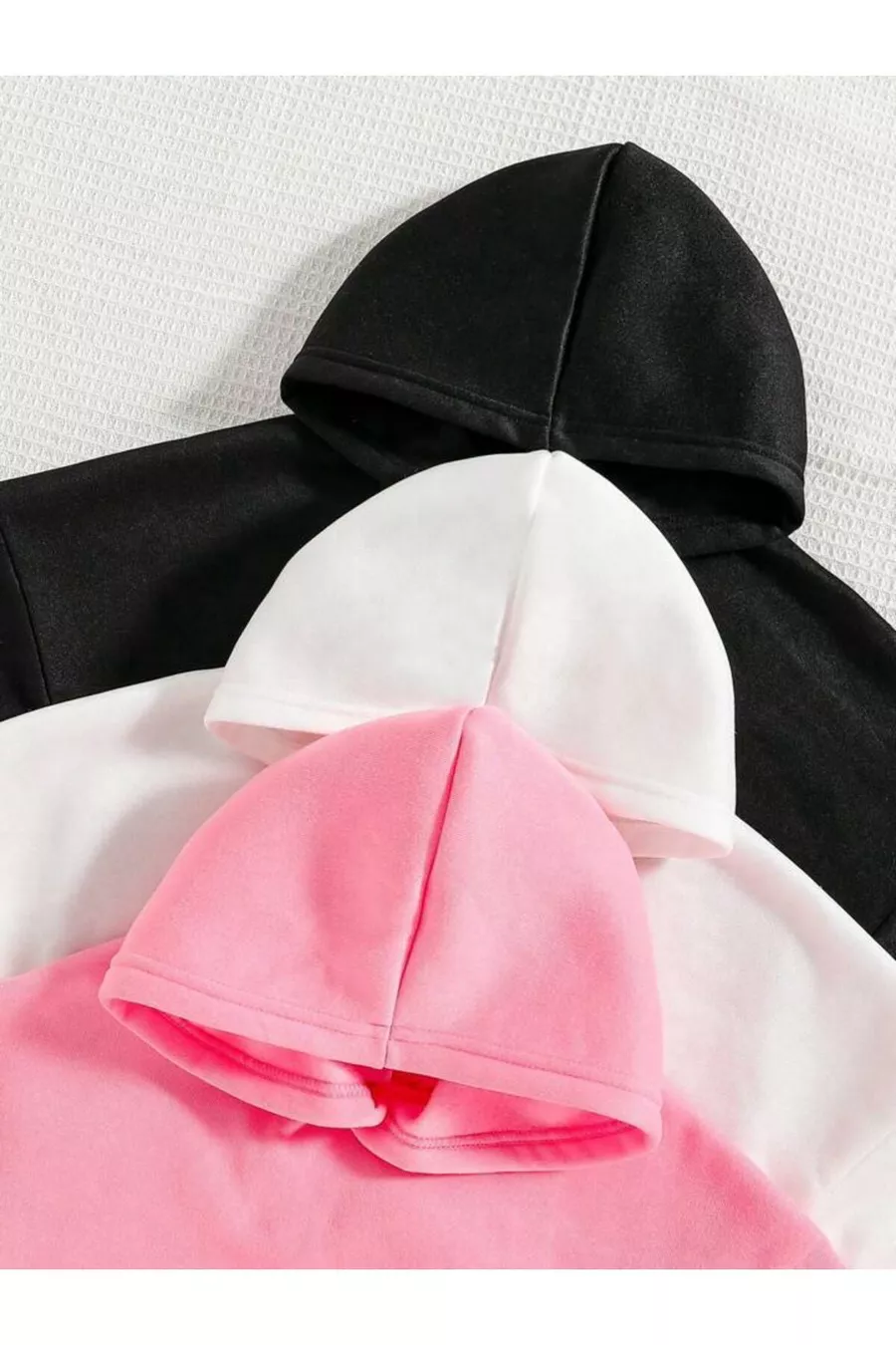 Felpa con cappuccio per bambina, set da 3 pezzi, stampa Girls, rosa-nero-bianco