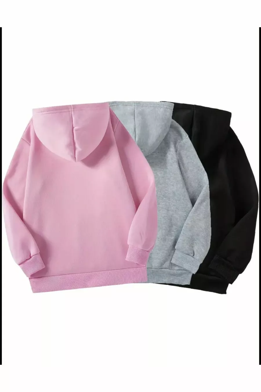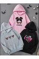 Felpa con cappuccio per bambina, confezione da 3, KidLife, stampa cuori, rosa-nera-grigia