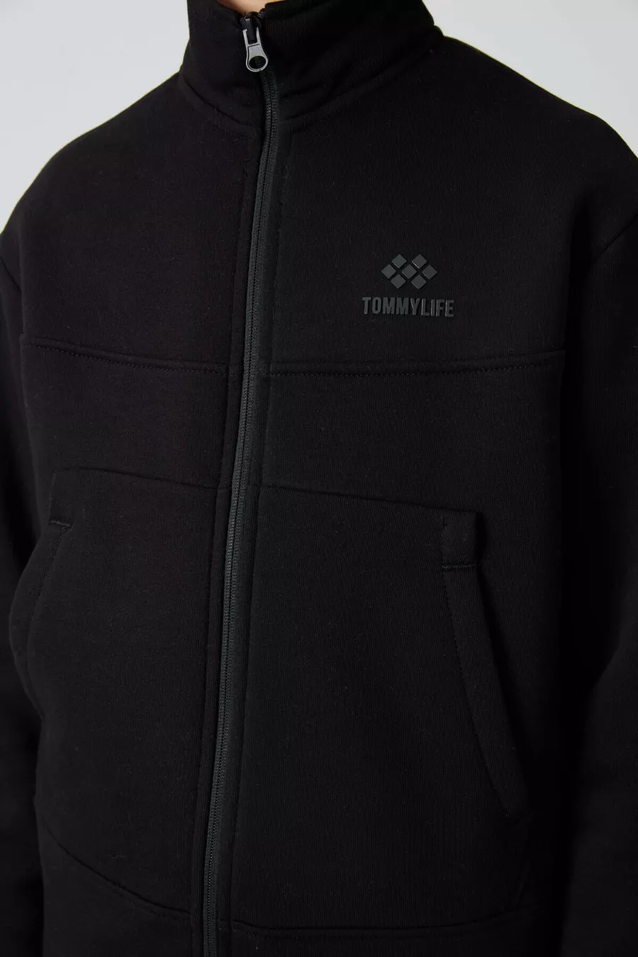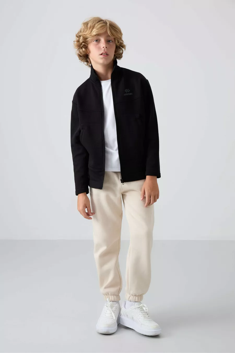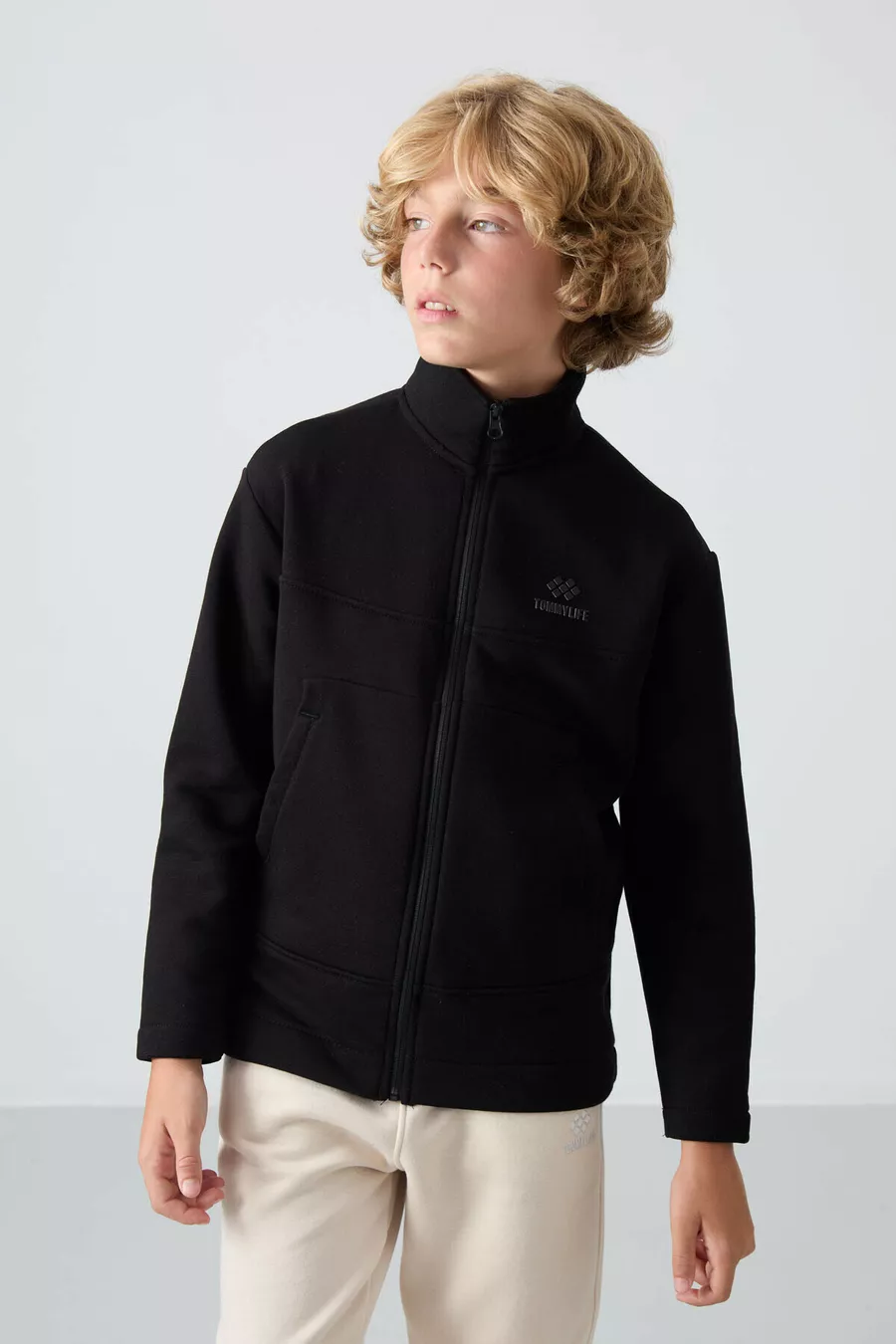 Felpa da bambino maschio nera in cotone spesso con interno morbido peloso, dalla vestibilità standard con ricamo -