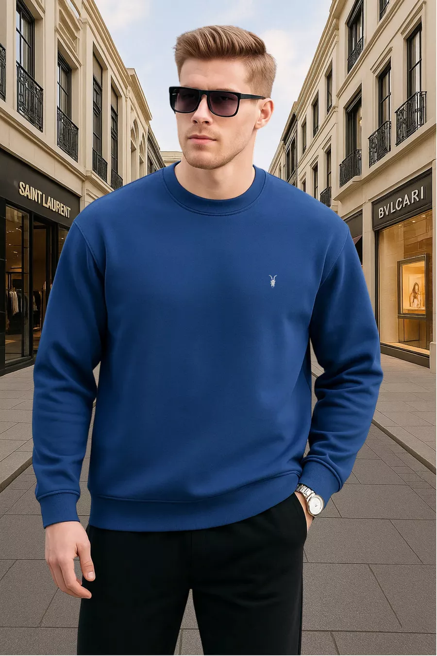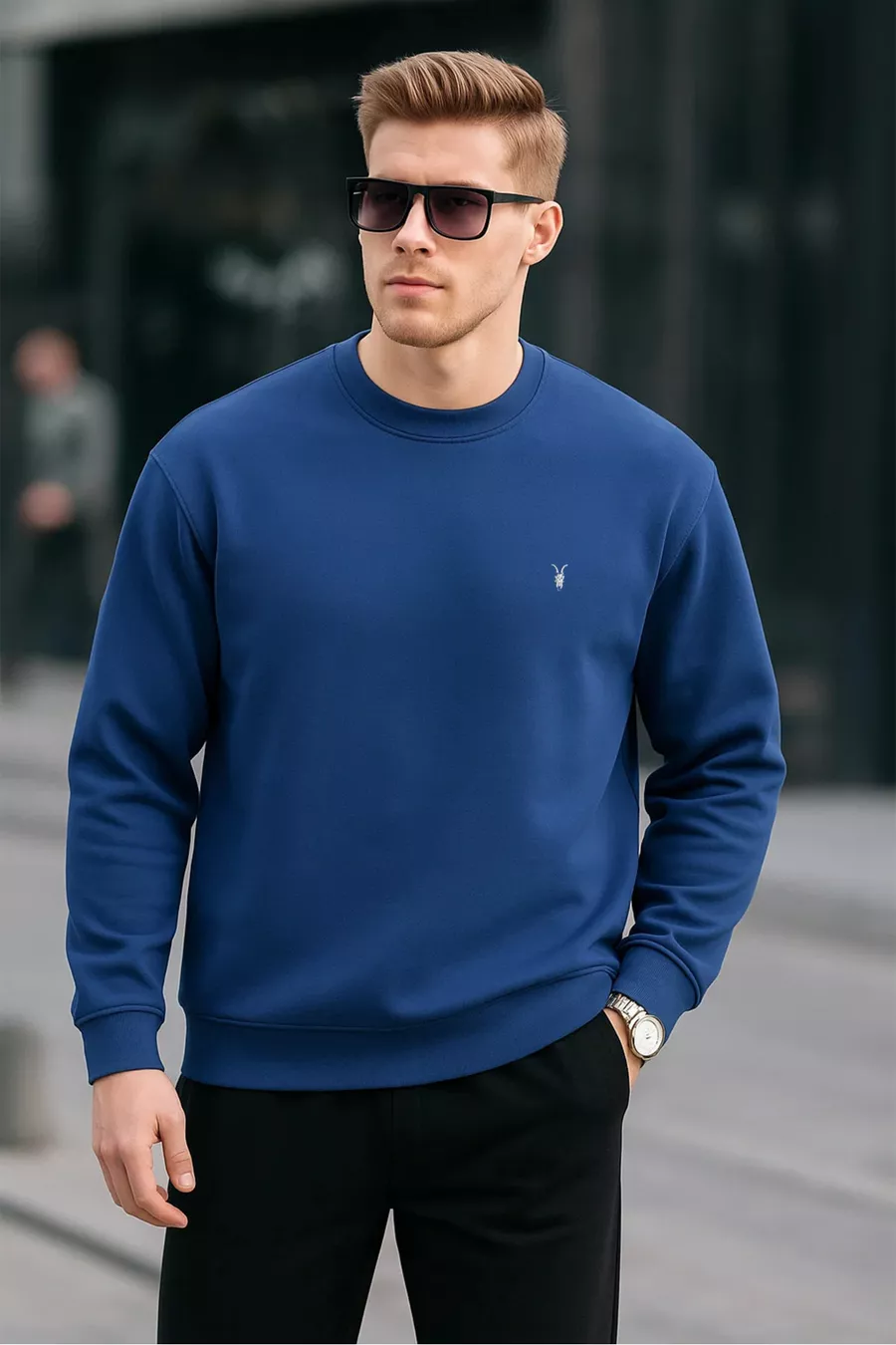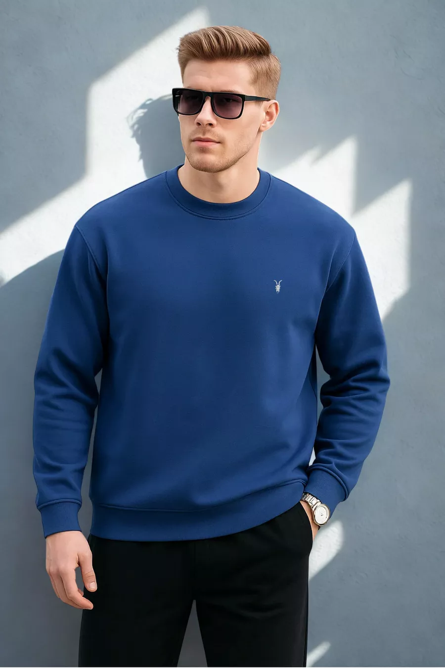 Felpa da uomo basic blu indaco con girocollo e taglio rilassato regular