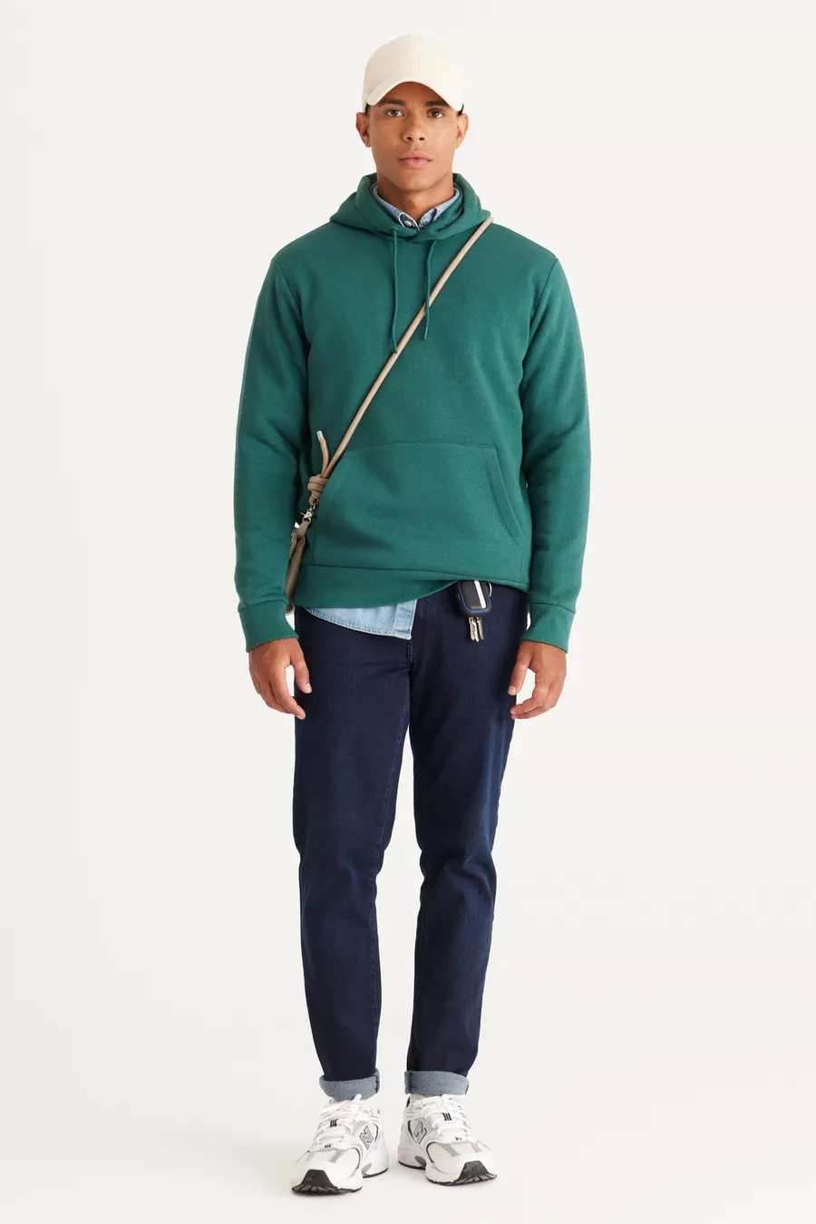Felpa da uomo verde scuro, vestibilità standard, taglio normale, con interno in pile, cappuccio a tre fili, in cotone