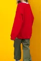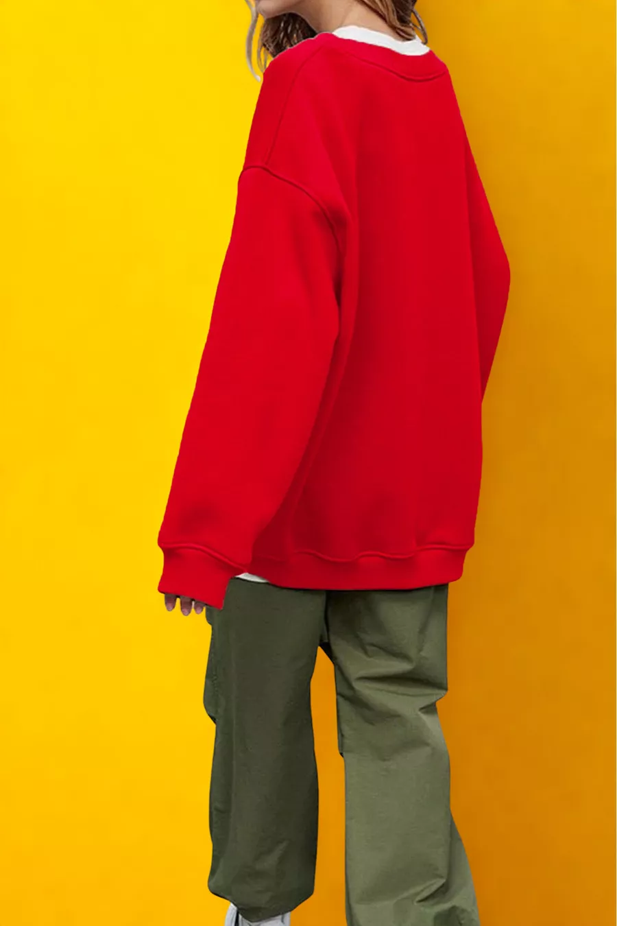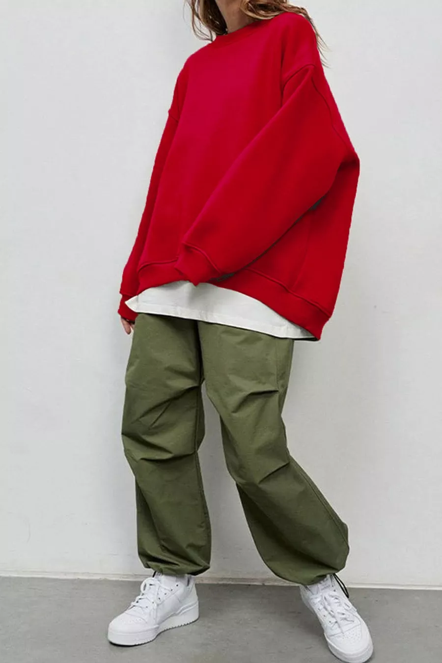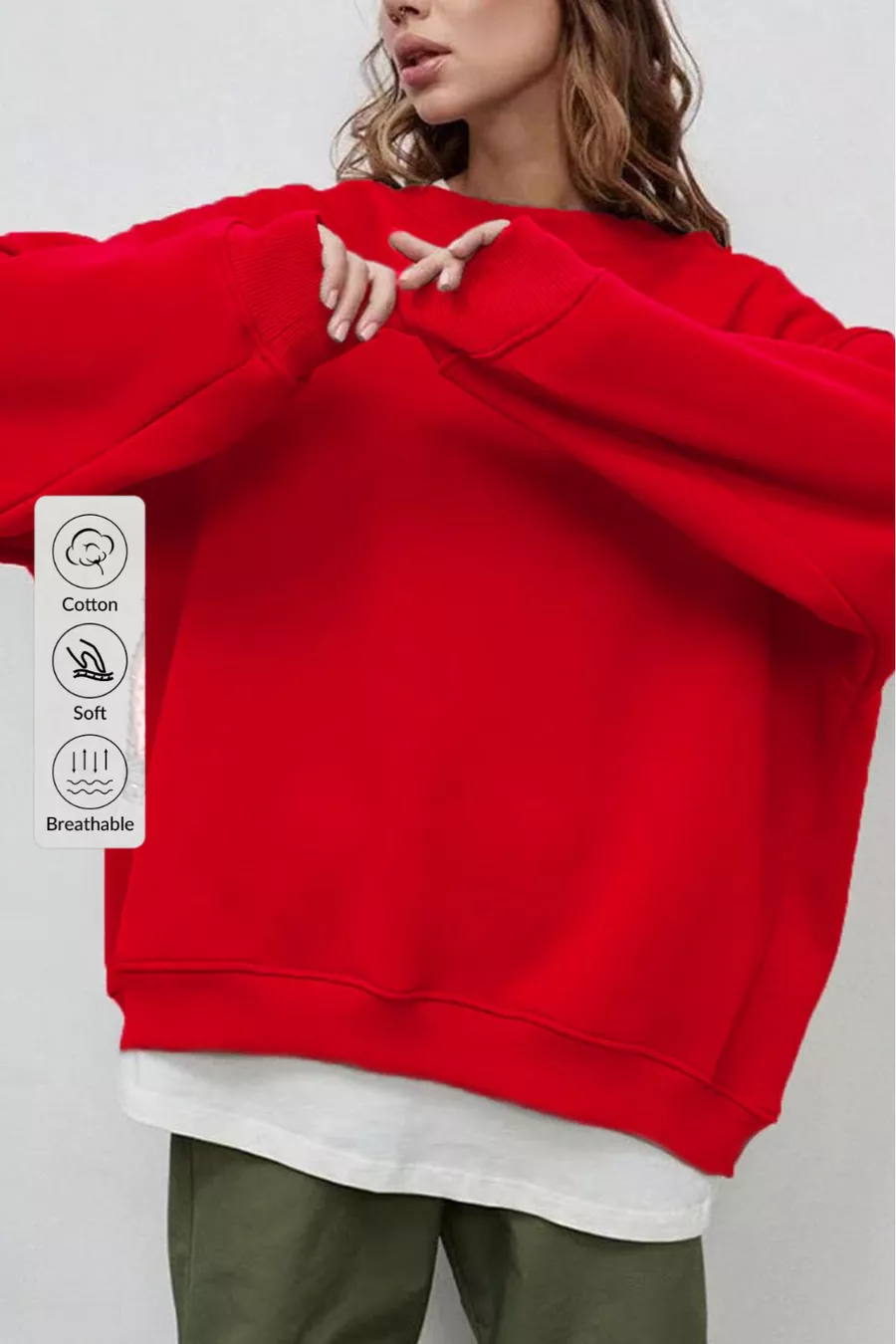 Felpa da donna rossa invernale con girocollo a bicicletta, morbida e ampia, foderata internamente