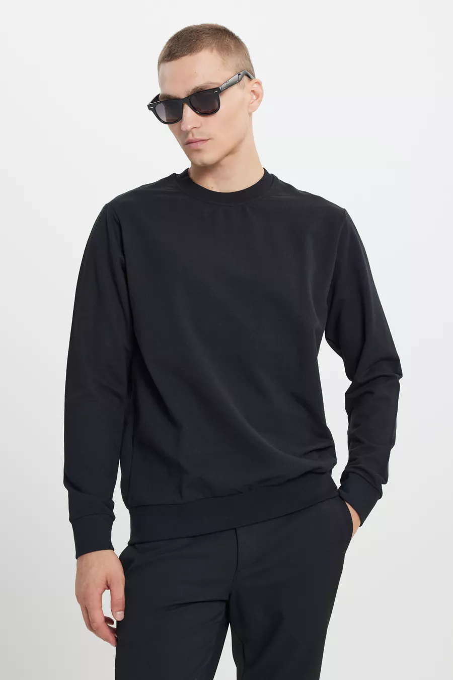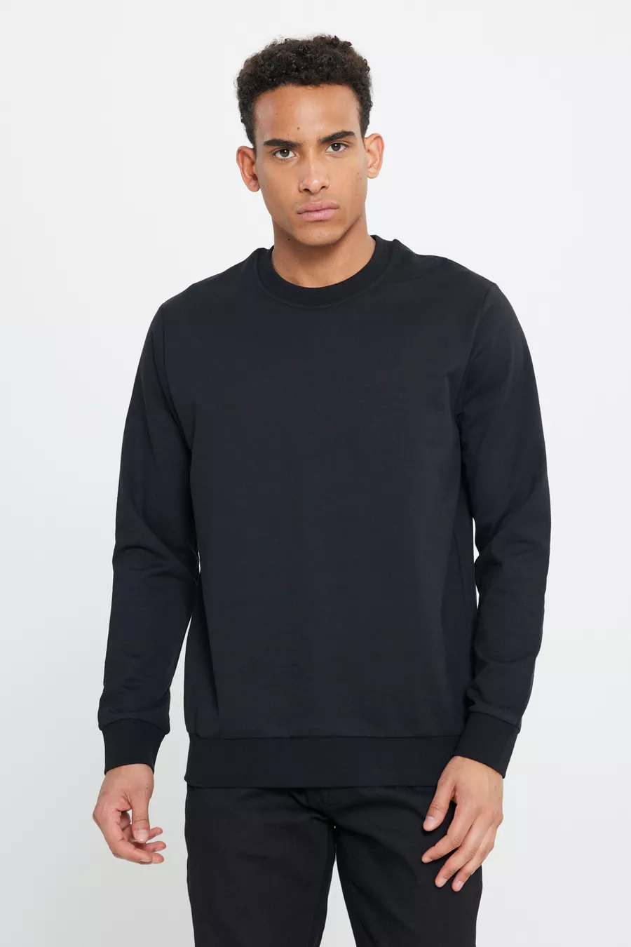 Felpa da uomo nera, confezione da 2, in cotone, vestibilità standard, taglio normale, collo rotondo