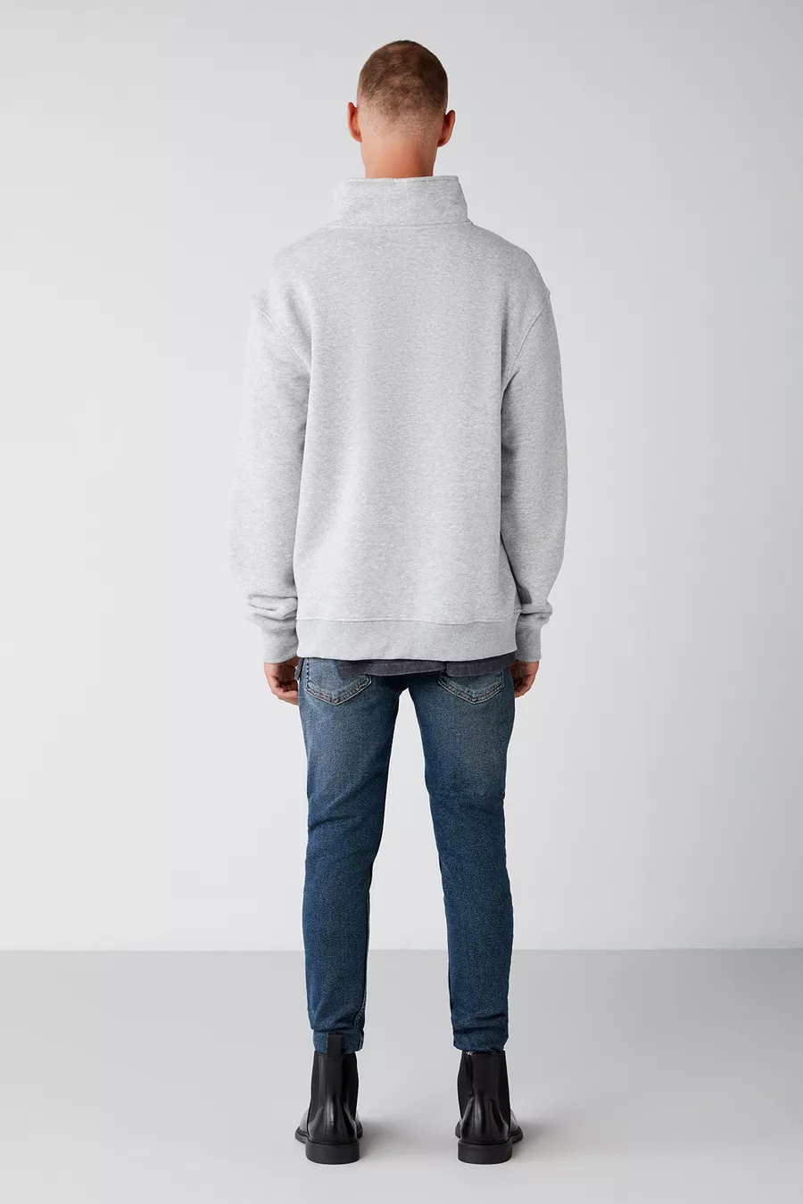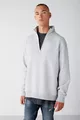 Felpa da uomo Frame con mezza cerniera, collo alto, in tessuto morbido e pile, regular fit, colore grigio melange