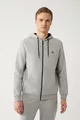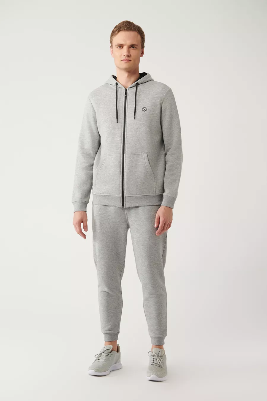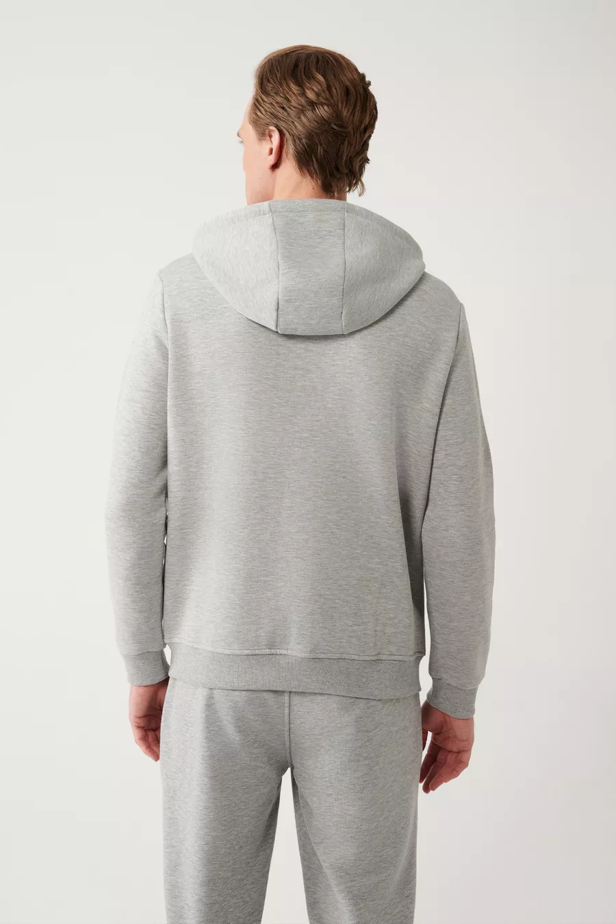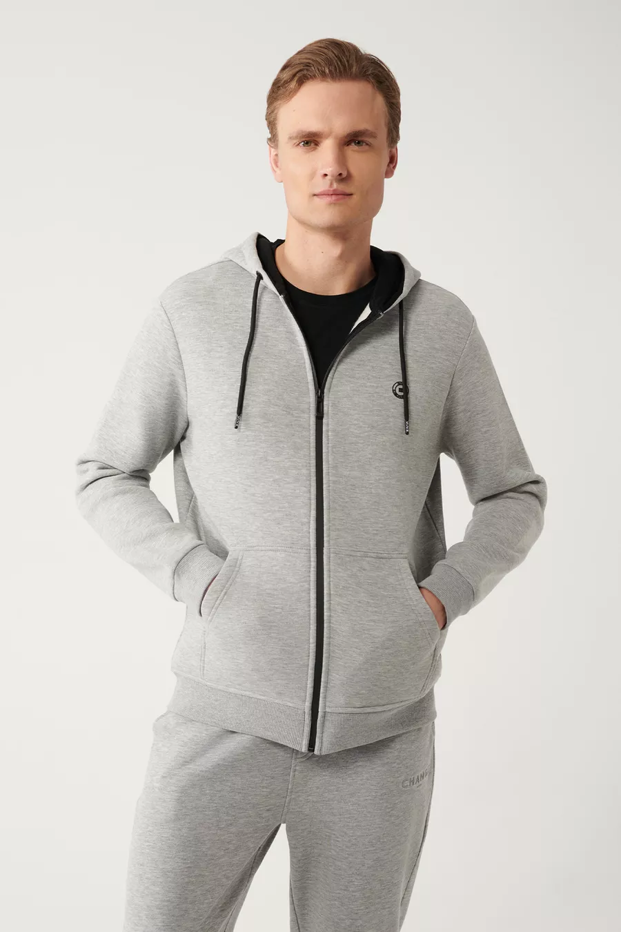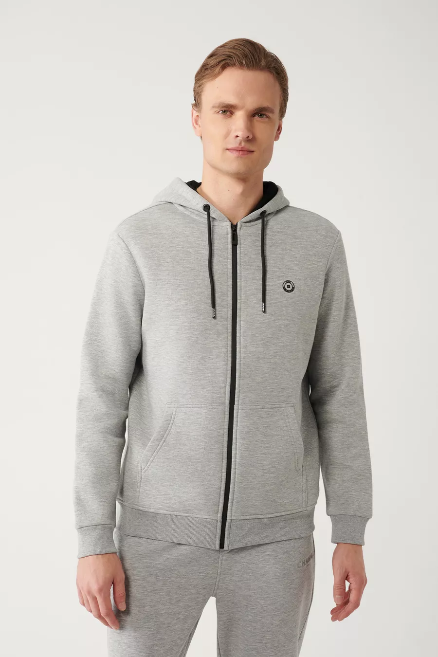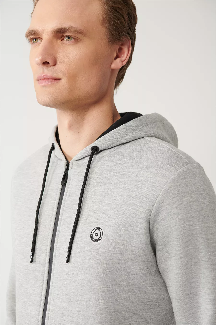Felpa da uomo grigia con cappuccio, zip e interno spazzolato a 3 strati, vestibilità regular