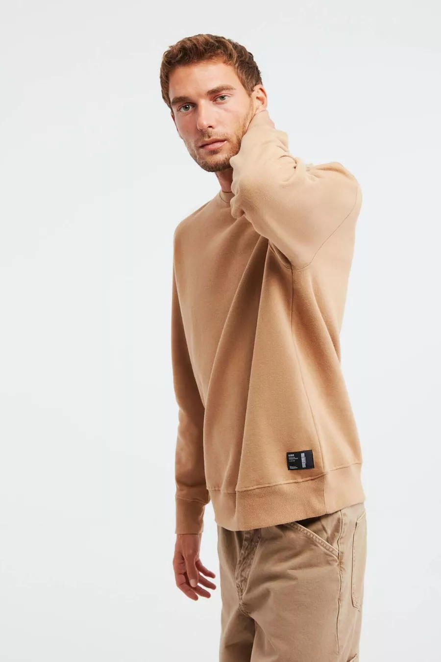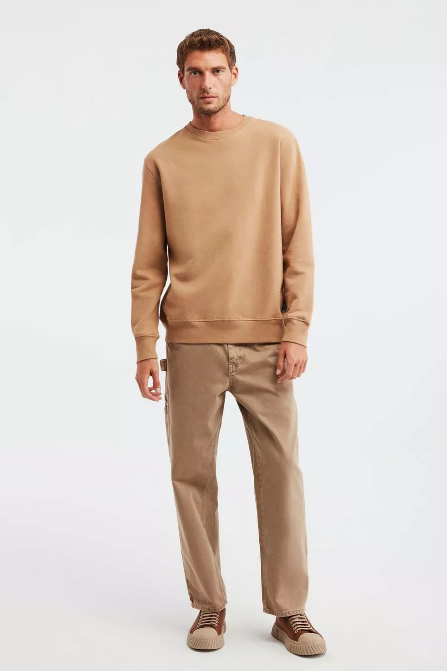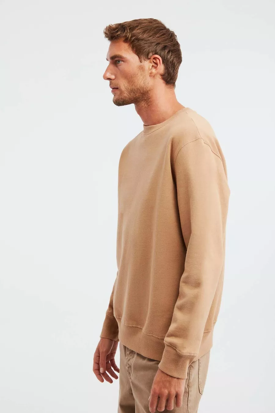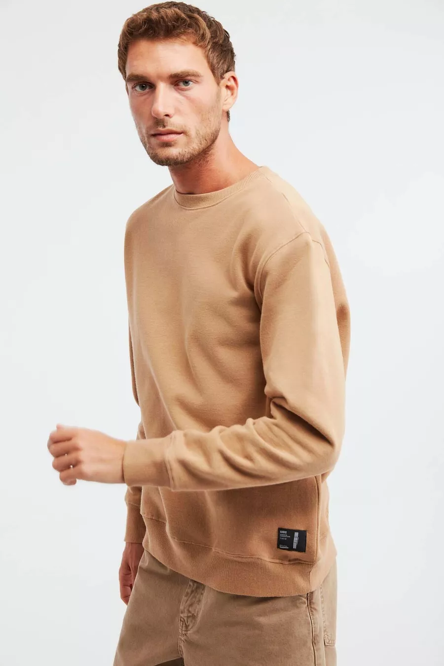 Felpa da uomo Travis marrone con tessuto morbidissimo, vestibilità regular e collo rotondo
